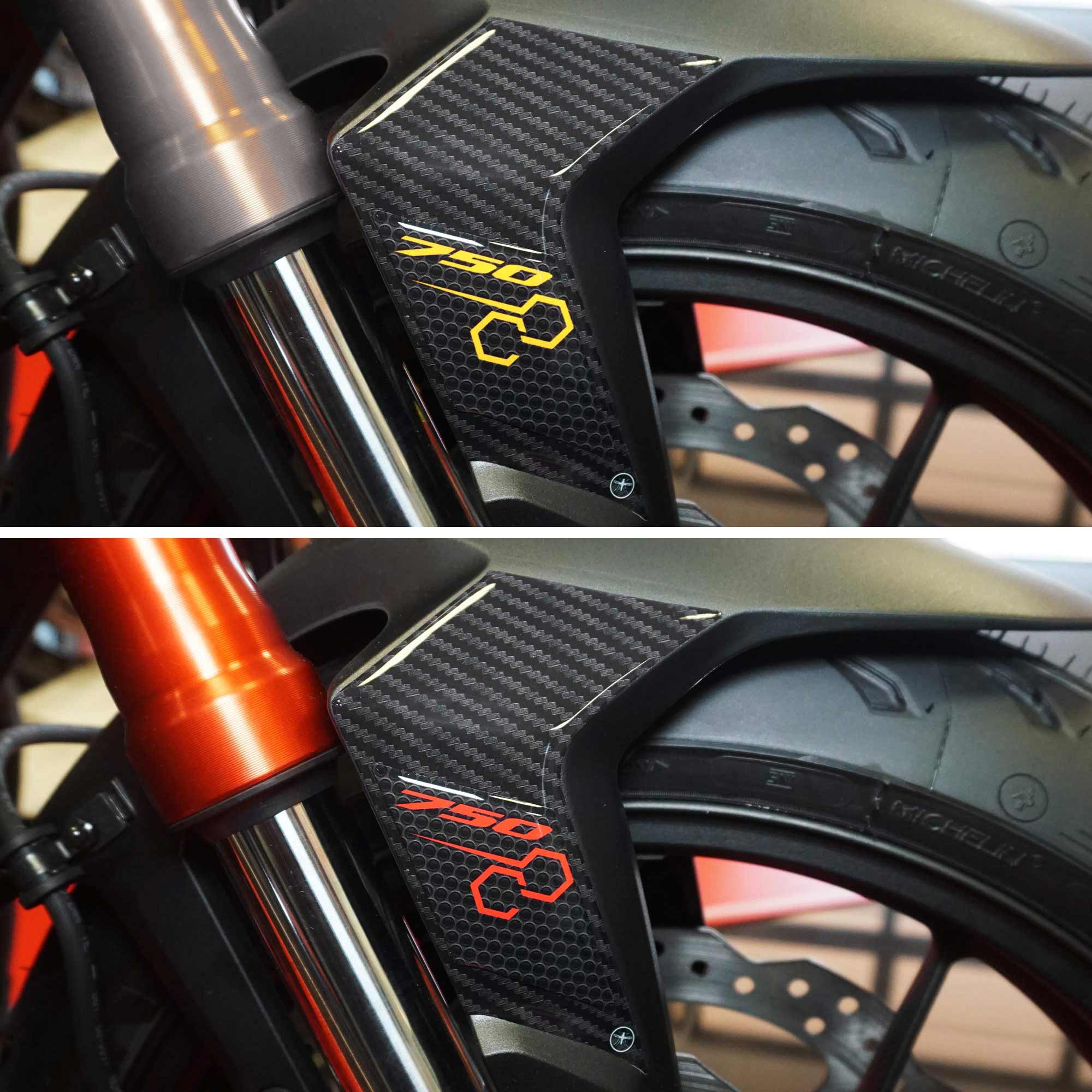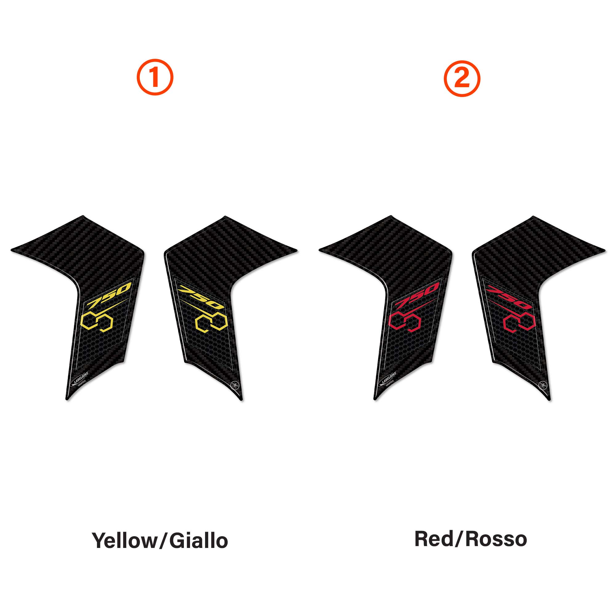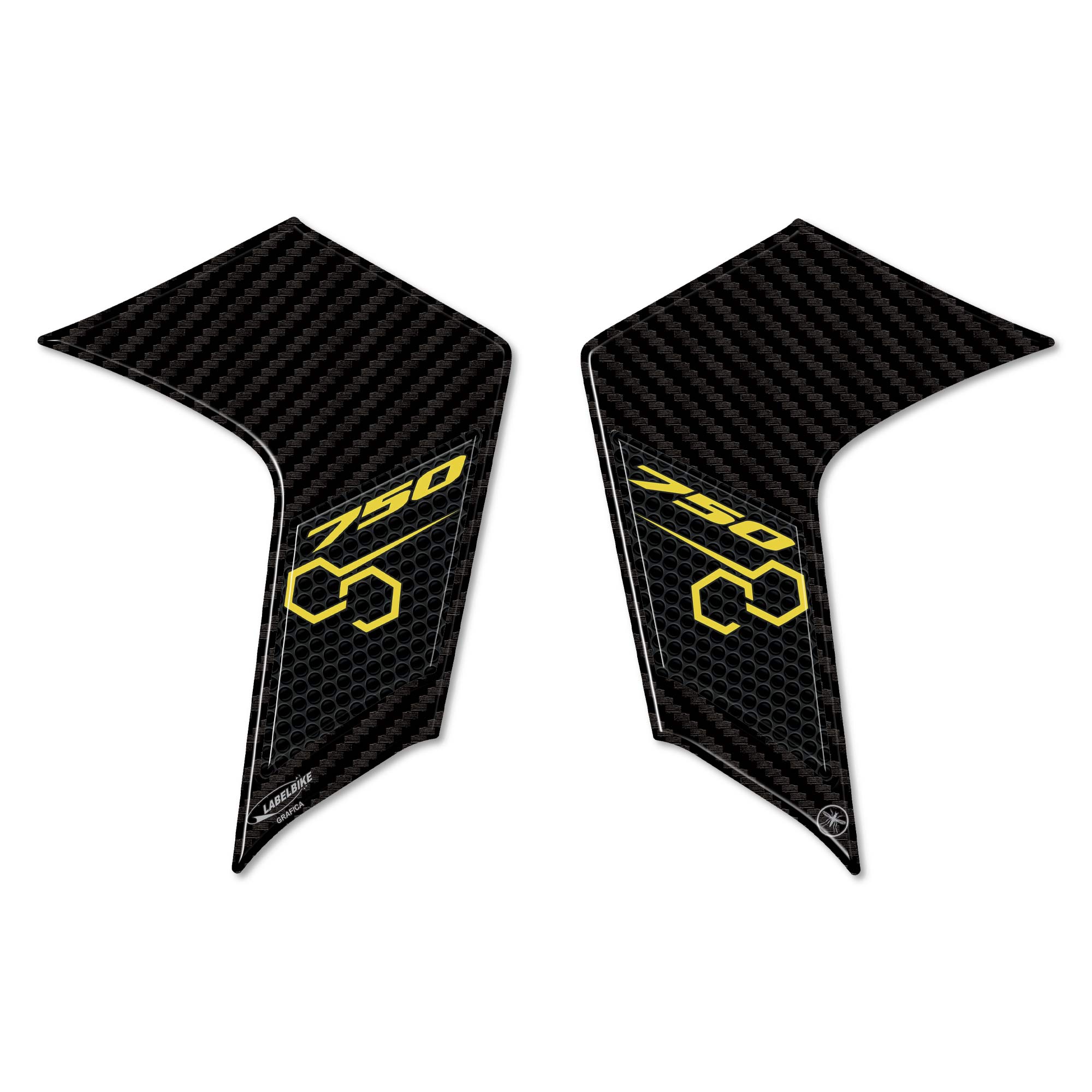 Pegatizas de protección de parafanato 3D REINTED CON EL COBONO BASE (efecto de carbono) y detalles en rojo o amarillo y con escritura 750.