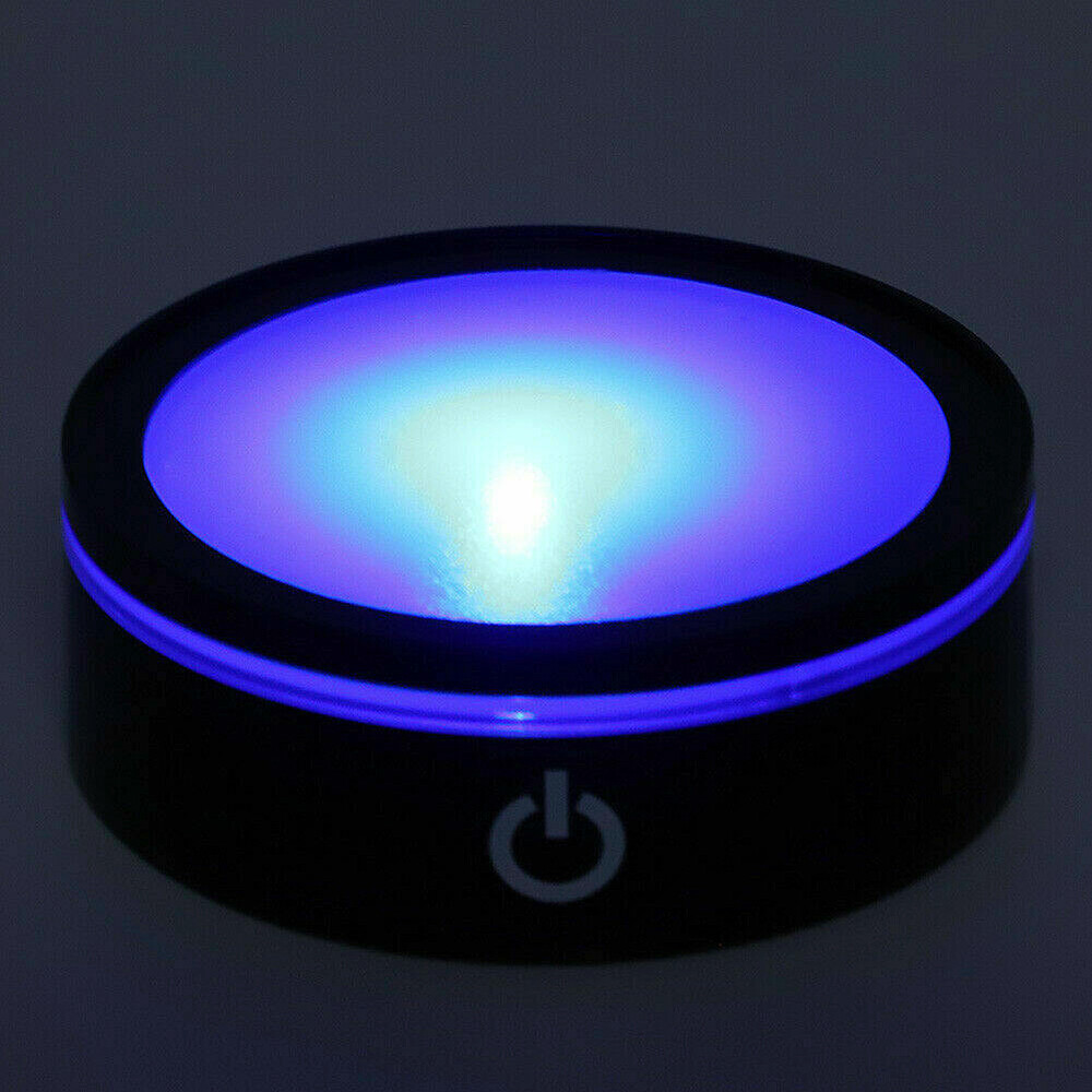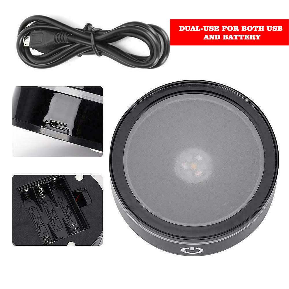 Specifications: 100% brand new and high quality Made of plastic construction, tough and sturdy, durable to use 4pcs LED lamp beads, 7 colors changing lighting effect, beautiful and charming Convenient touch switch allow you to wake up the LED base easily and quickly Can be used for crystal, art glass, acrylic, 3D crystal statues Material: Plastic Casting Color: Black Size: 8.1*2.8cm Power Supply: 3* AAA batteries(Not included) Interface: USB LED Quantity: 4pcs Light Color: Colorful