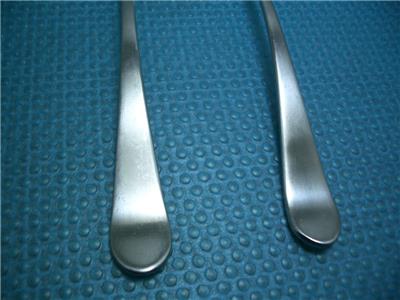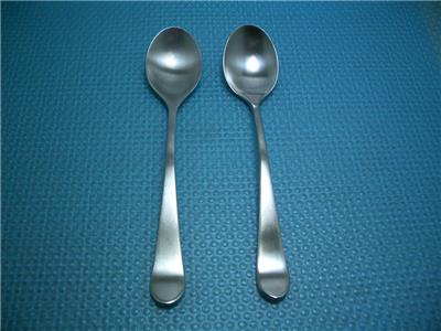 GS GOURMET SETTINGS "MILE HIGH-SATIN FINISH" SET OF 2 TEASPOONS. BOTH SPOONS ARE IN VIRTUALLY NEW CONDITION WITH ONLY A HINT OF USE THEY MEASURE: 6 3/4" LONG.