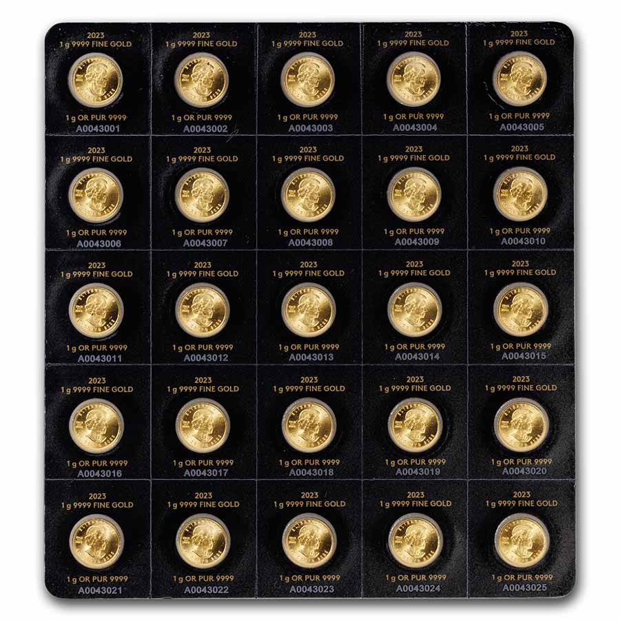 Coin Highlights: - Contains 25 total grams of .9999 fine Gold.