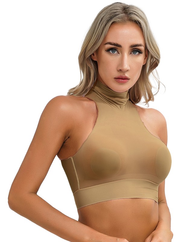 Sleeveless crop top for women, mock neck, see-through design perfectly shows your body curve and makes you more attractive.