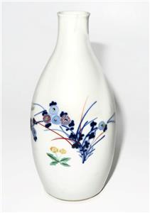 You have found the missing piece to your Japanese Collection! Here is an Tokkuri or Sake Bottle that features a White Body with Blue Flowers. The bottle is 5 1/8" tall, and in very good preowned condition based on a Crack on the Rim from Use (see Pictures). Please see our Not Just China Store for more Sake Bottles & Collectibles.