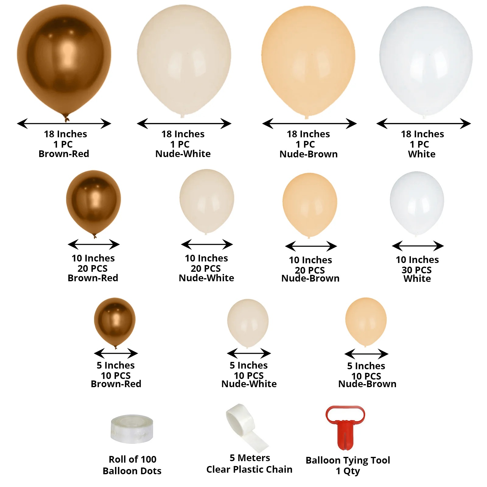 * Total of 1 balloon tie, 100 balloon dots, and a 5m clear plastic chain.
