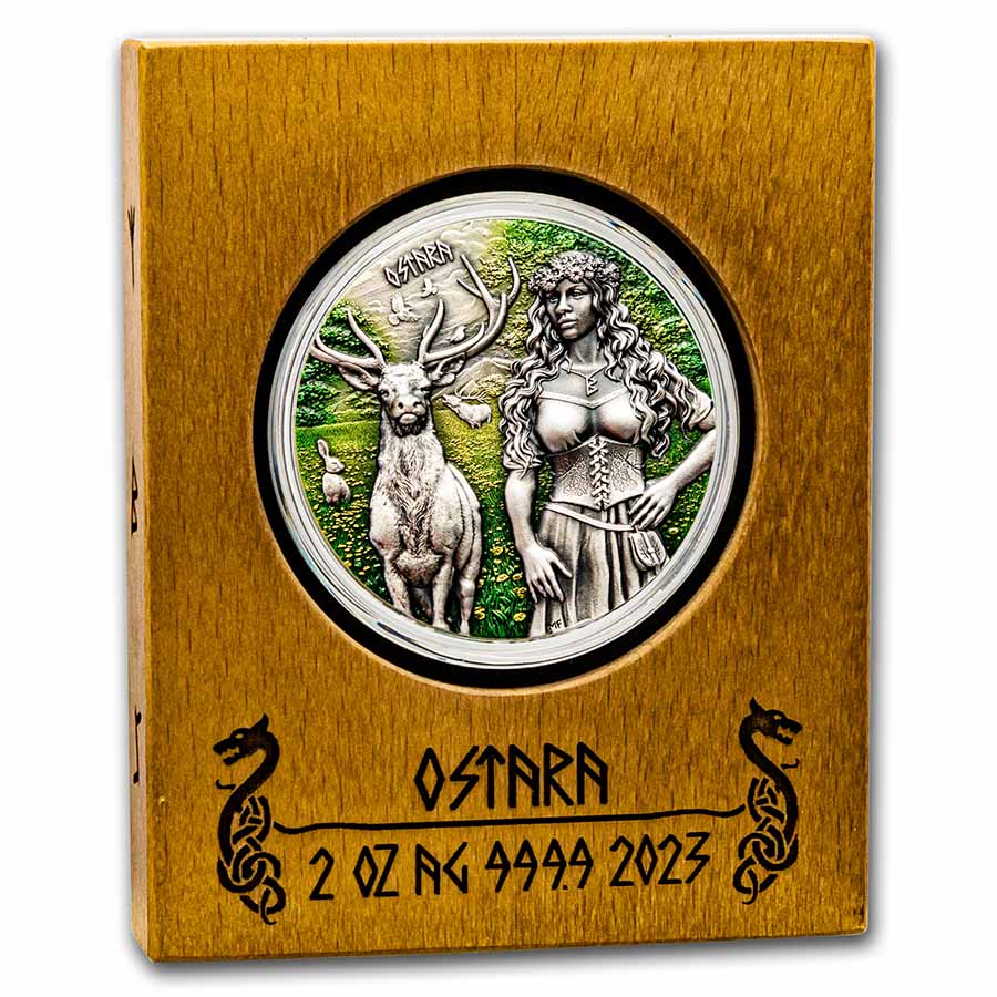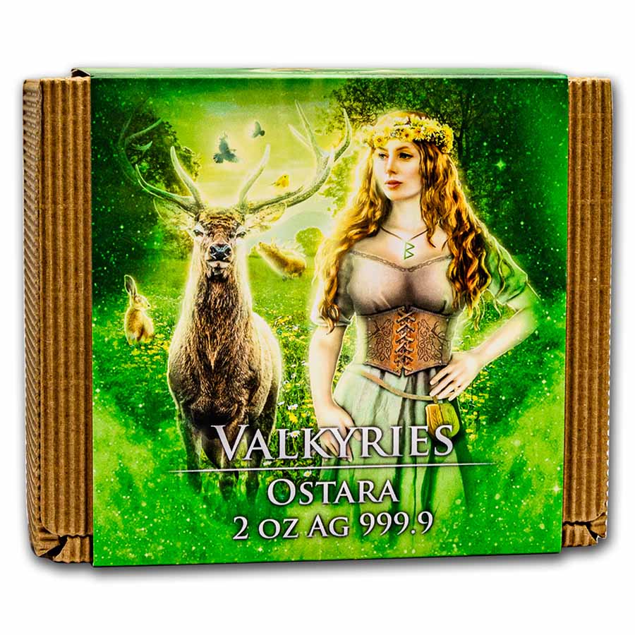 Germania Mint ValkyriesBuilding upon a portfolio of popular series such as Allegories, Mythical Forest and Warriors, Germania presents the new Valkyries series. This series will spotlight Germanic goddesses, said to carry the souls of the bravest soldiers fallen in battle to Valhalla. APMEX is proud to offer the second release in the series featuring Ostara, supporter of warriors who fall in battle.