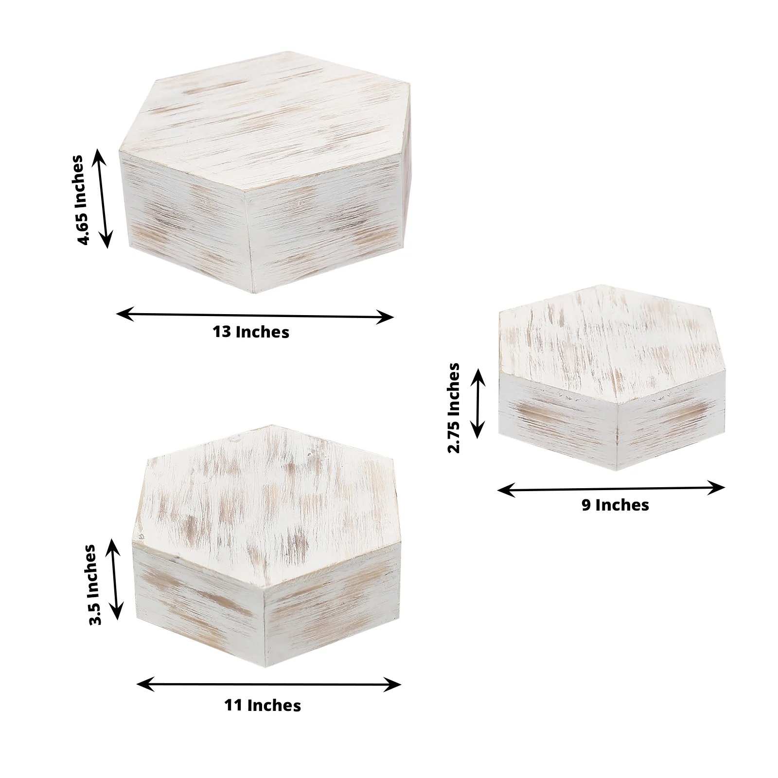 3 Whitewashed Wooden CAKE STAND Hexagonal Dessert Display Boxes