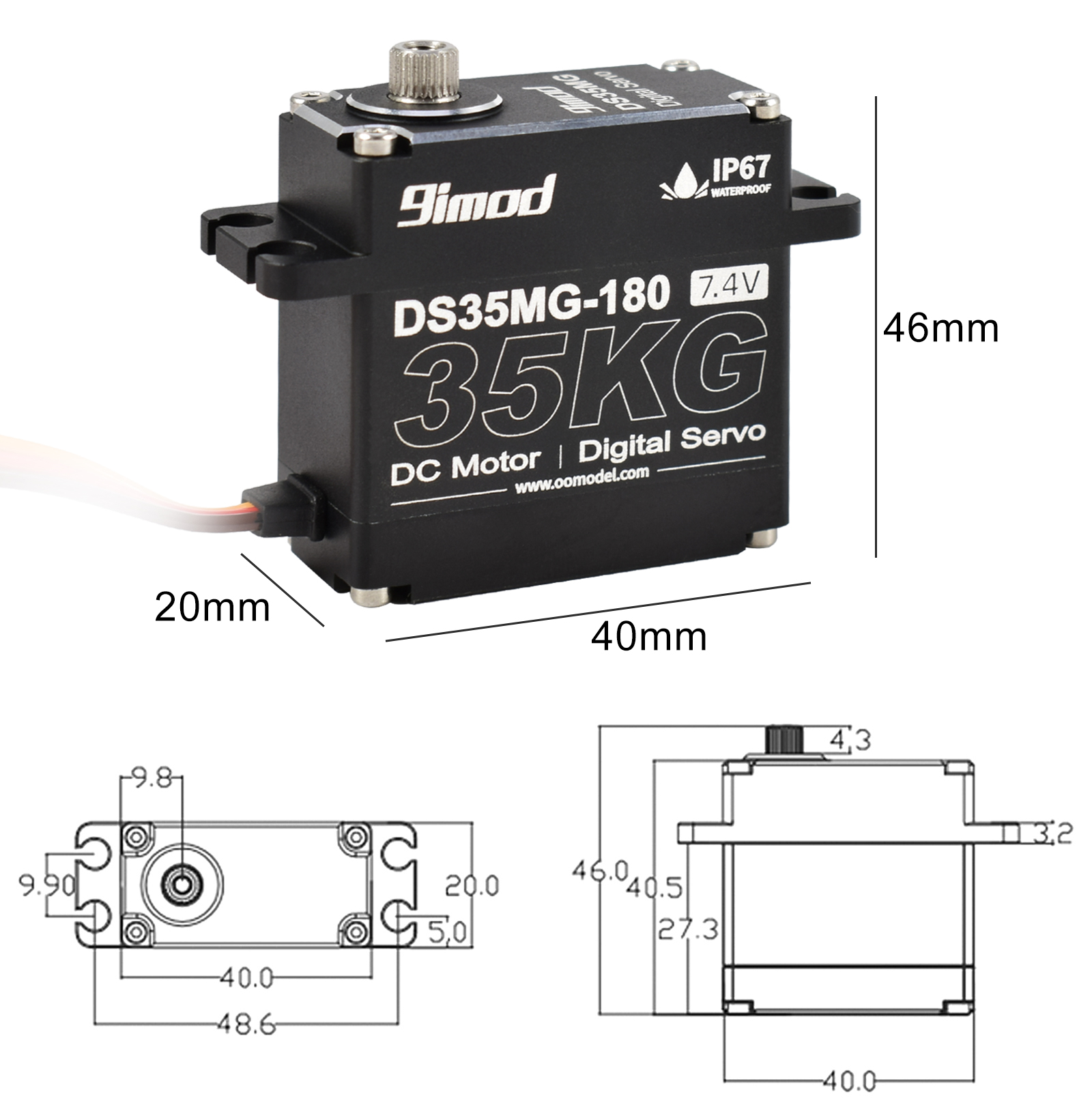 The 9imod DS35MG 35KG Large torque Digital Waterproof servo,adopt DC motor,Compared with ordinary servo, the speed is much faster and the reaction is also fast,4.8V -7.4V High Operation Voltage Range,