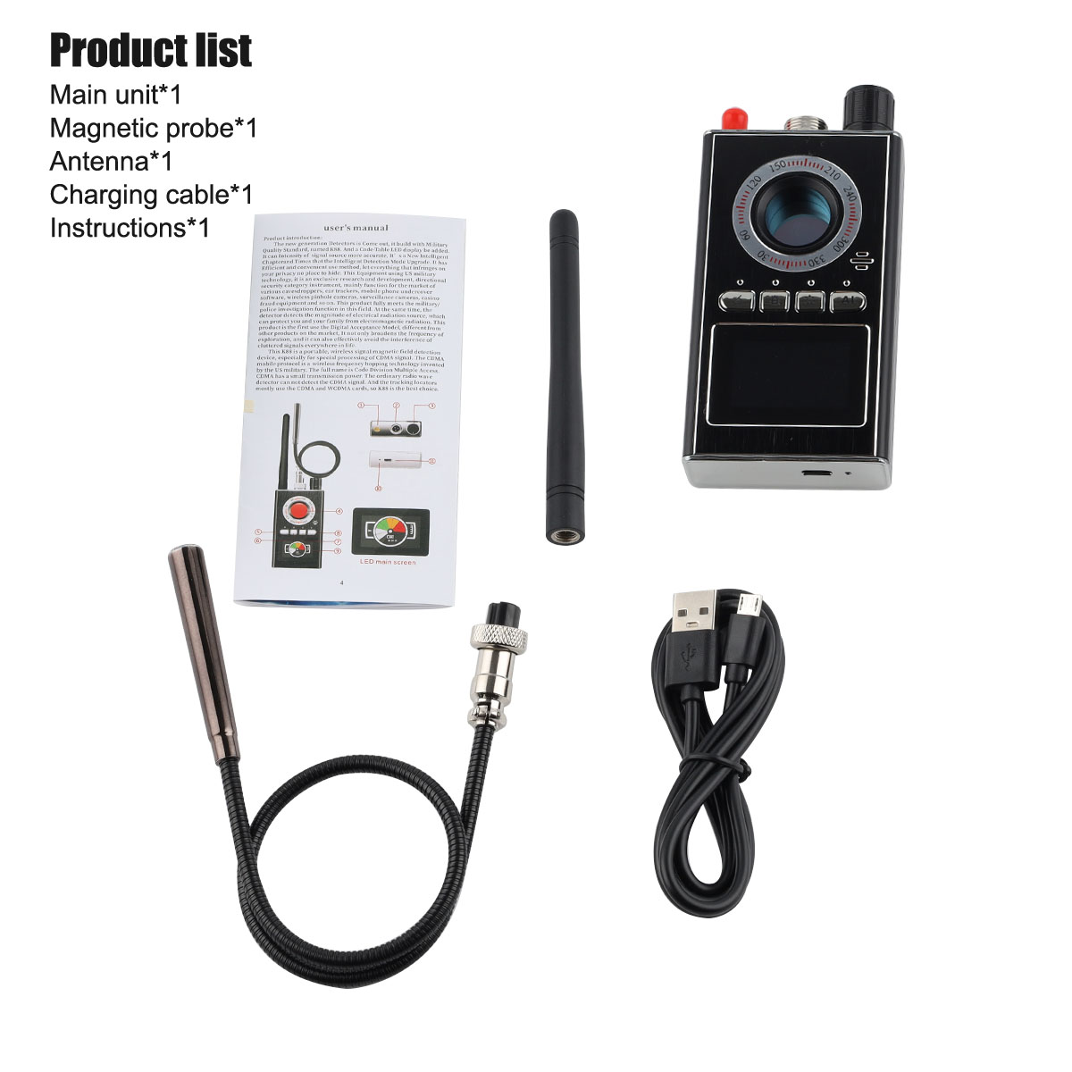 【Upgrade military quality】Using advanced chips,The improved one is easy to operate and portable. Stronger anti-jamming and wider range of detection frequency.this product has modes of laser scanning, RF wireless signal detection, magnetic field signal detection and so on. With high sensitivity and strong anti-interference ability, it can accurately detect various eavesdroppers, GPS locators, trackers, 1.2G~6.5G wireless camera, 2G/3G/4G signal from SIM card bug and other equipment.