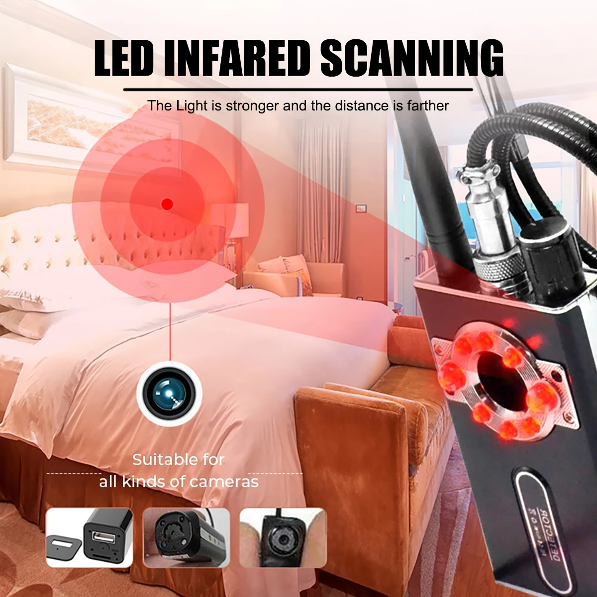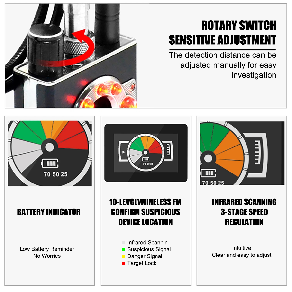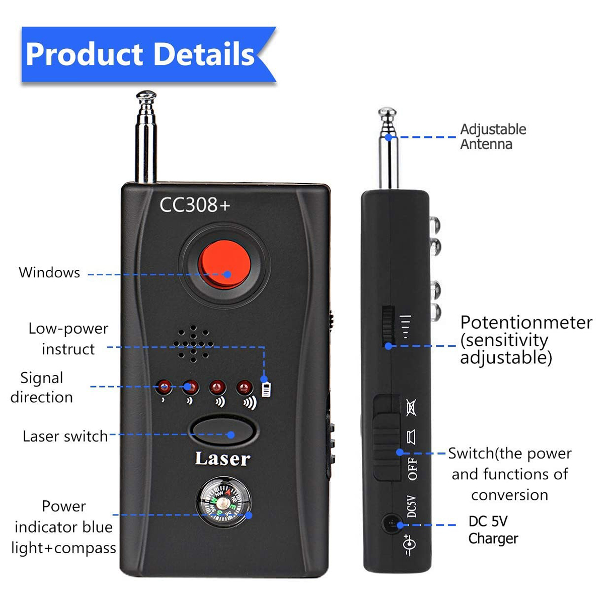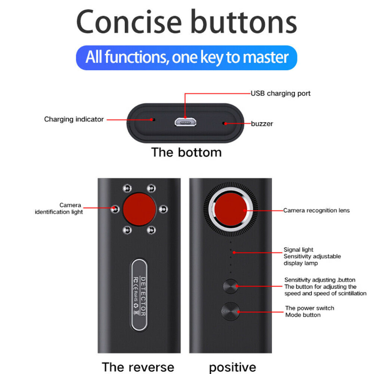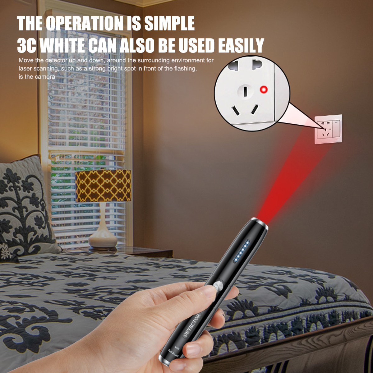 【Anti Spy Hidden Camera Detector】This Anti Spy Camera Detector Using advanced chips military quality has powerful laser technology, wireless signal and magnetic field signal processing technology. With automatic detection function, you can complete a wide range of detection in minutes, eliminating all suspicious risks, It can effectively prevent eavesdropping, videotaping, fraud and protect personal privacy data and information confidential.