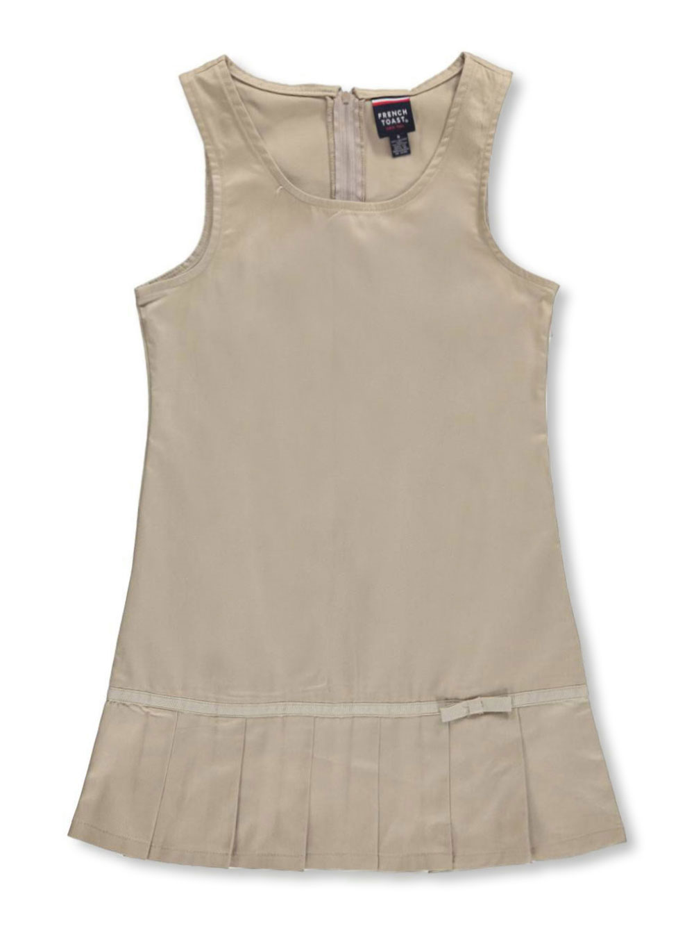 This French Toast jumper is a cool and comfy addition to her school wardrobe. Made of soft brushed twill, it features a sleeveless bodice, easy-access zipper in the back, and a pleated skirt. A pretty bow accent and grosgrain ribbon trim add extra sweet style. 55% Cotton, 45% Polyester Machine Wash Cold Imported
