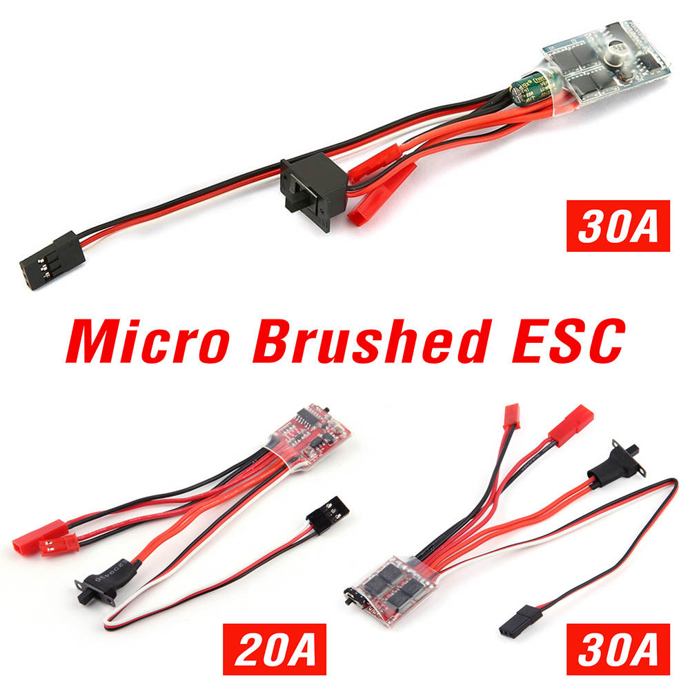 1. Micro ESC: Compact and lightweight, easy to install and use.It's bidirectional 20A/30A miniature brushed ESC with brake for DIY mosquito/mini-z car.Designed for receiver and steering SERVO