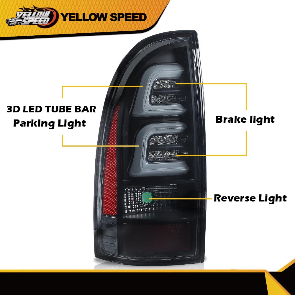 PRODUCTFit For 05-15 Toyota Tacoma Tail Light Brake Parking Lamp 3D Led Tube Bar Smoke