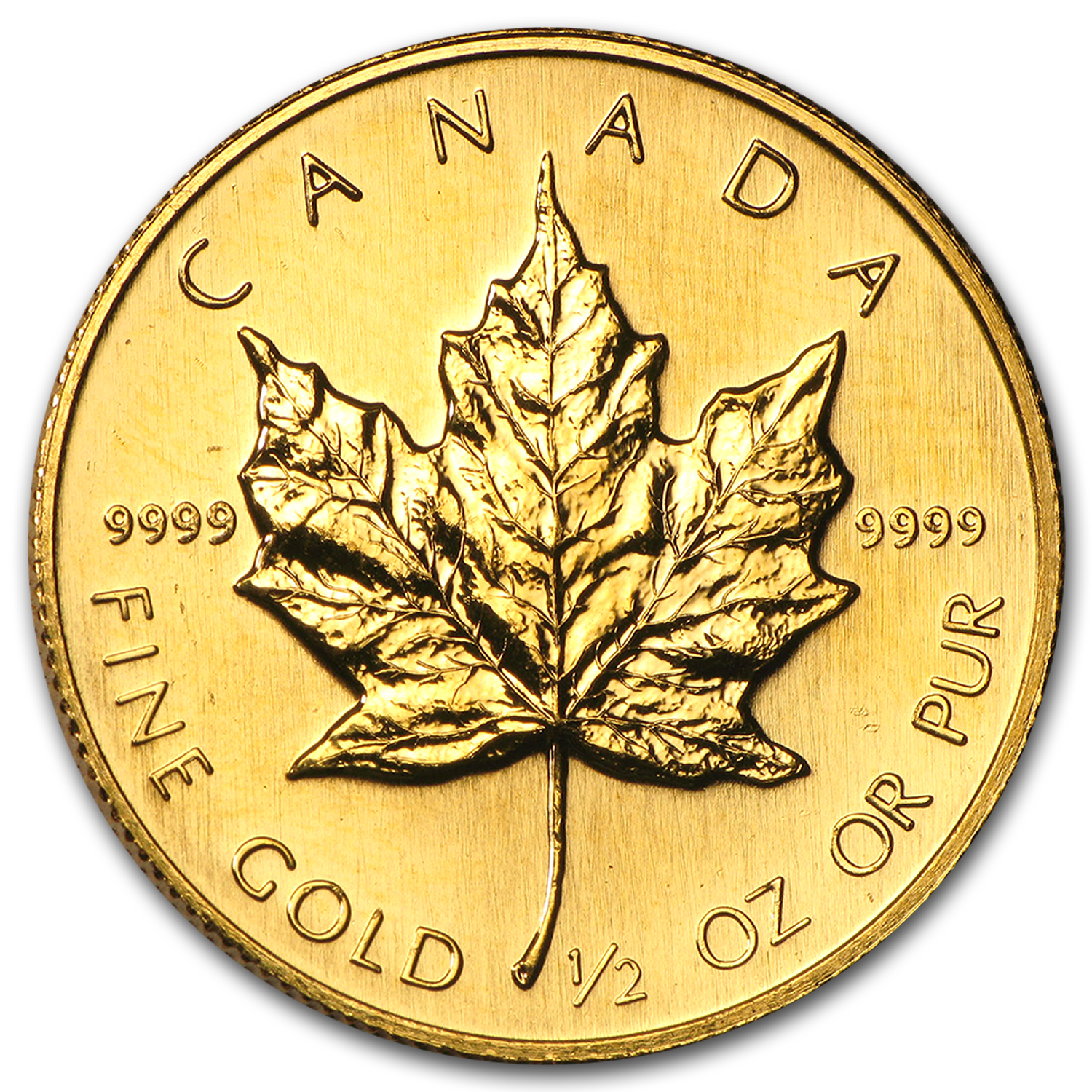 These Gold coins remain one of the most popular bullion coins to date, not only for their iconic single maple leaf design, but beauty and high purity as well. Add this 1988 1/2 oz Gold Maple Leaf to your cart today!