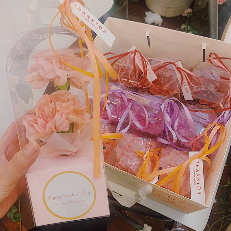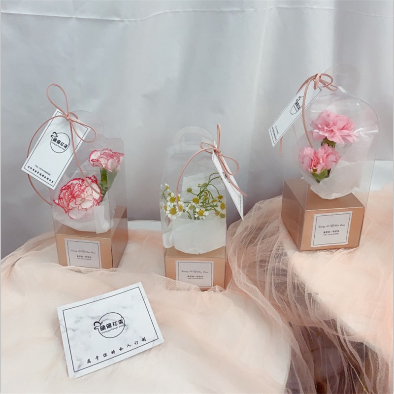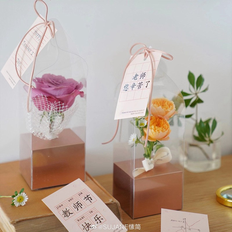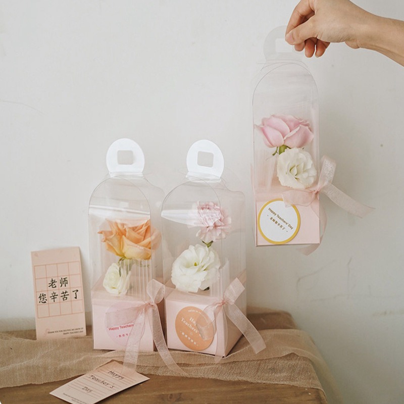 Teacher's Day Gift Box Portable Transparent Lighthouse Flower Box PVC Single Rose Box Preserved Fresh Flower Bouquet Floral Empty.