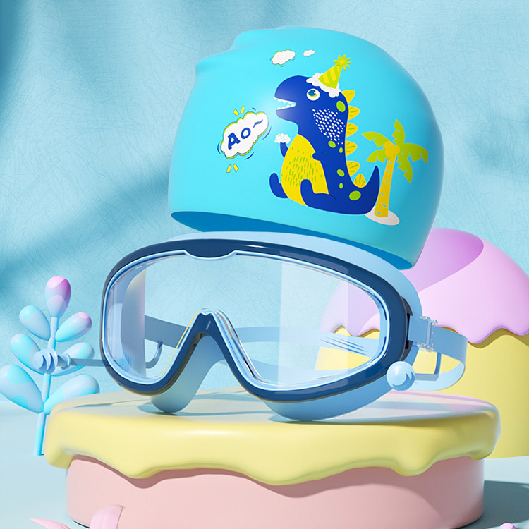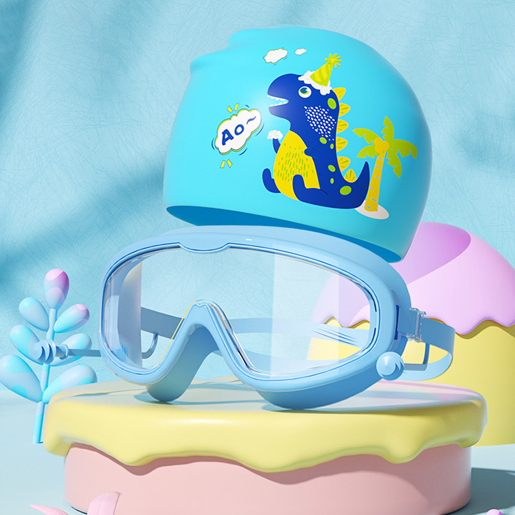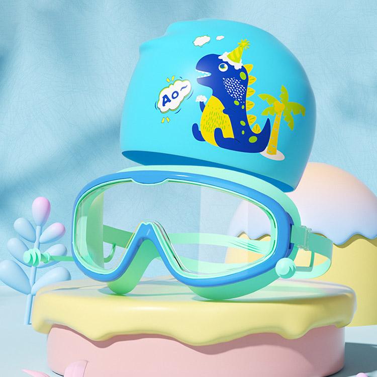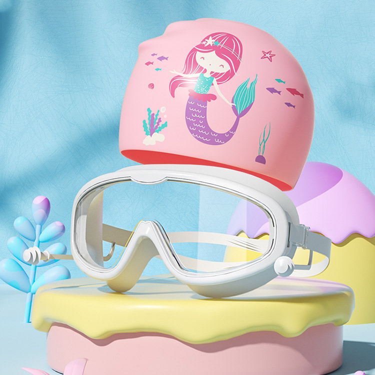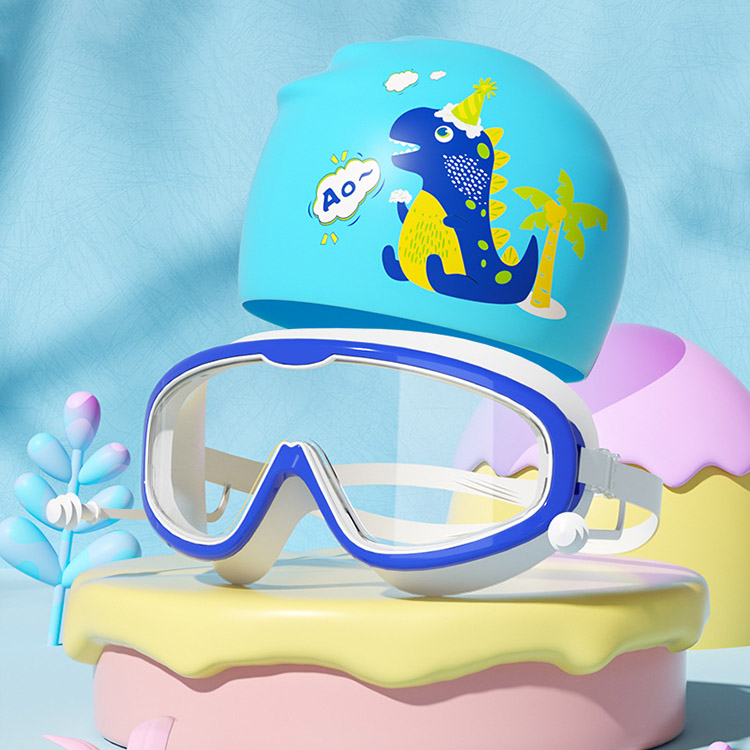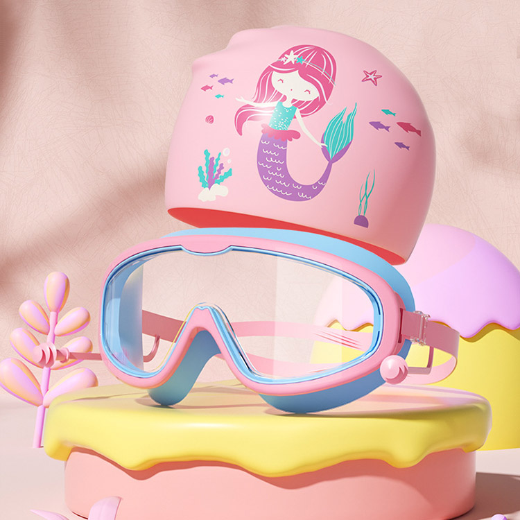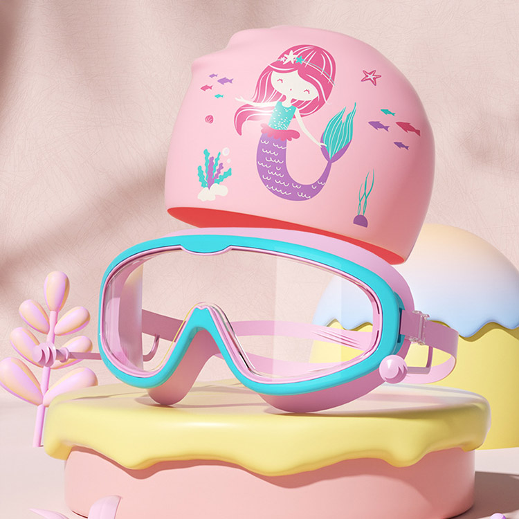 Swimming Goggles and Swimming Cap Set Big Goggles Anti-Fog Leak Proof Swimming Equipment for Kids