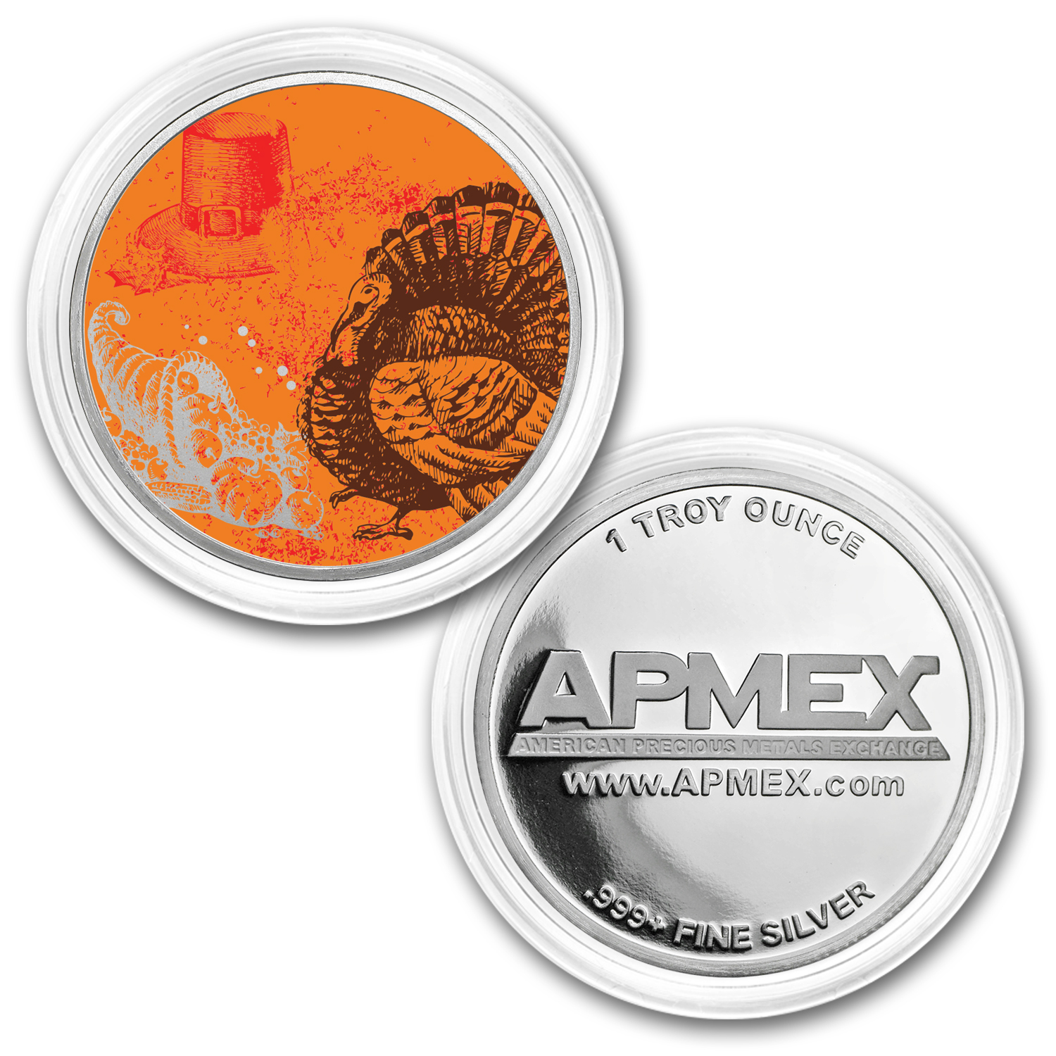 Pick up one of these unique colorized rounds while supplies last. Add this beautiful full-color 1 oz Thanksgiving round to your cart today!