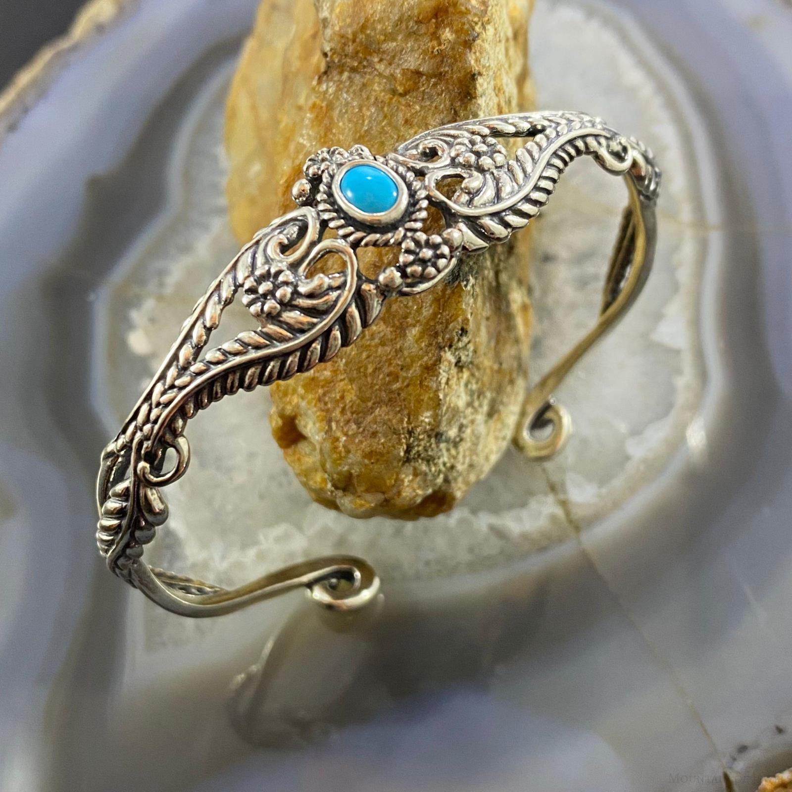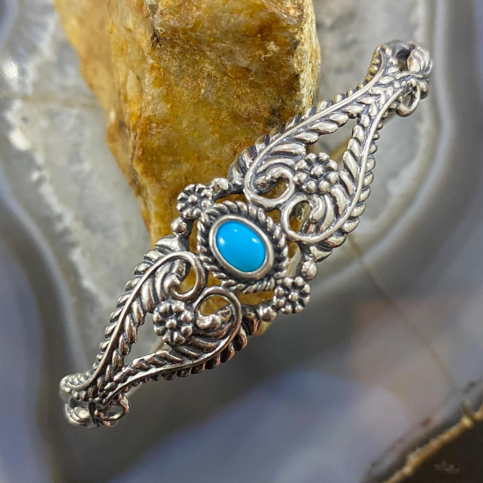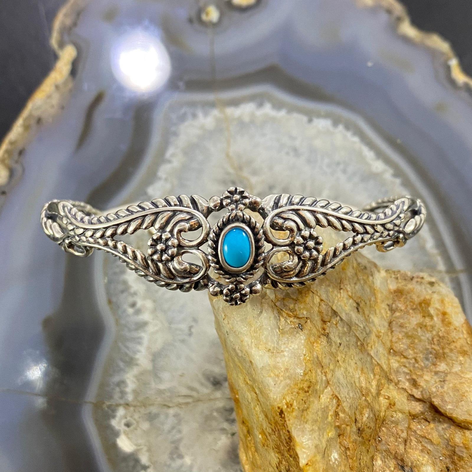 Beautiful Carolyn Pollack Vintage Southwestern Style Sterling Silver Oval Sleeping Beauty Turquoise Cabochon Decorated Bracelet For Women.