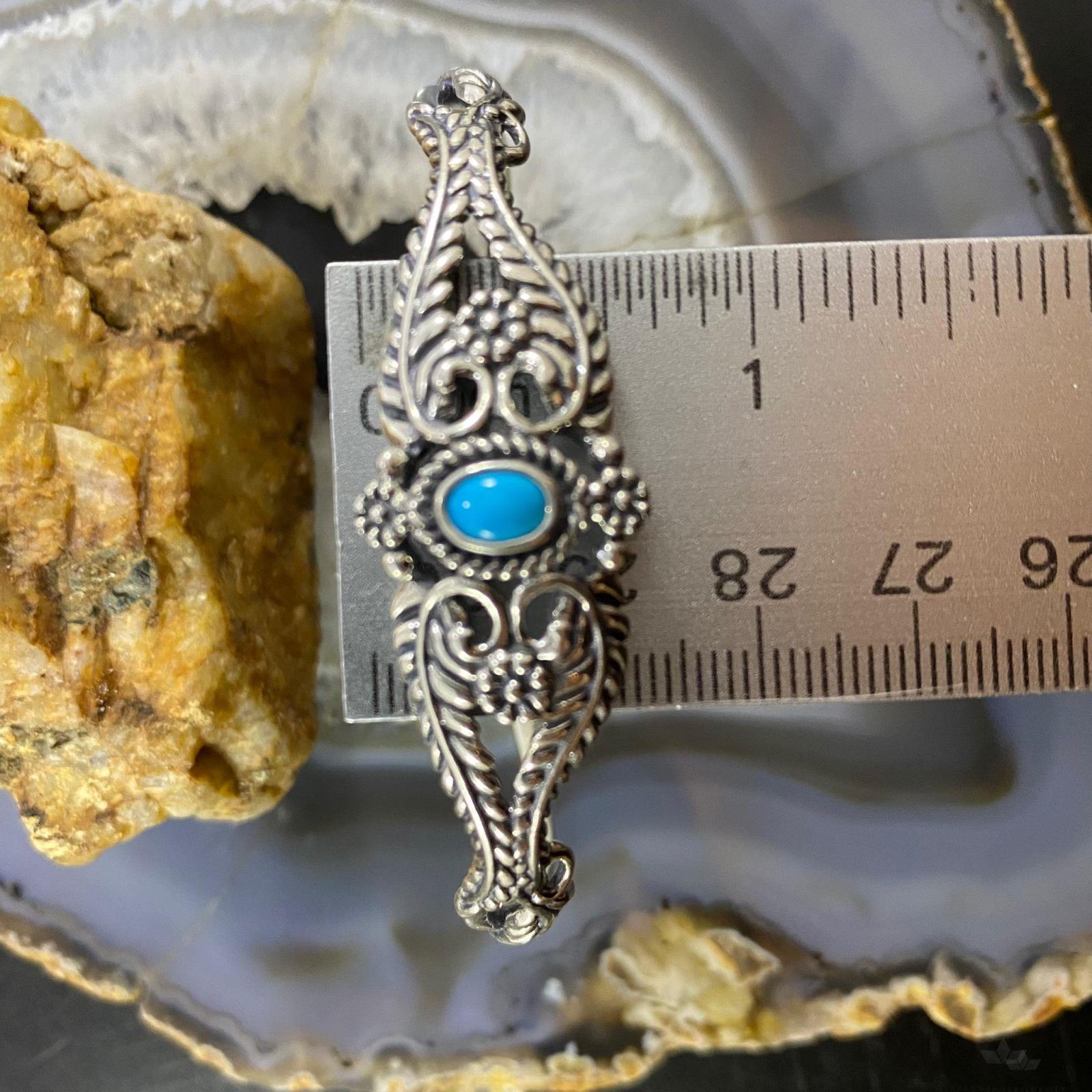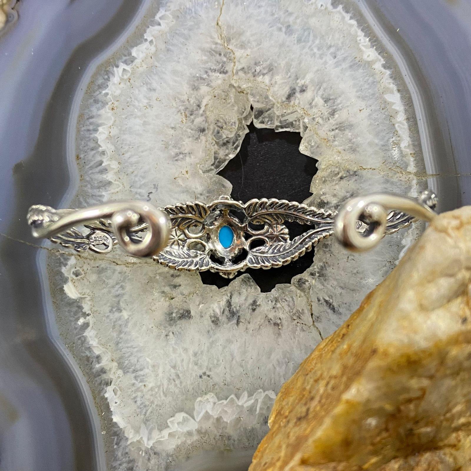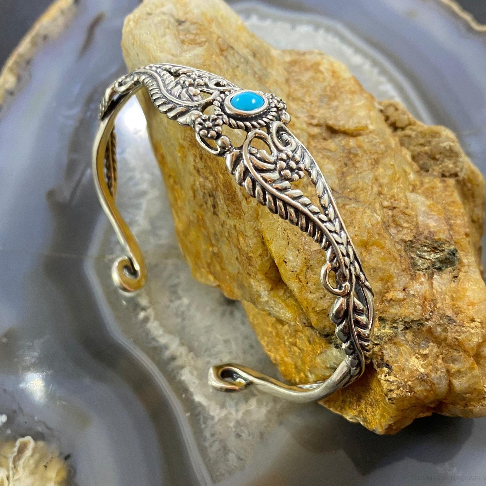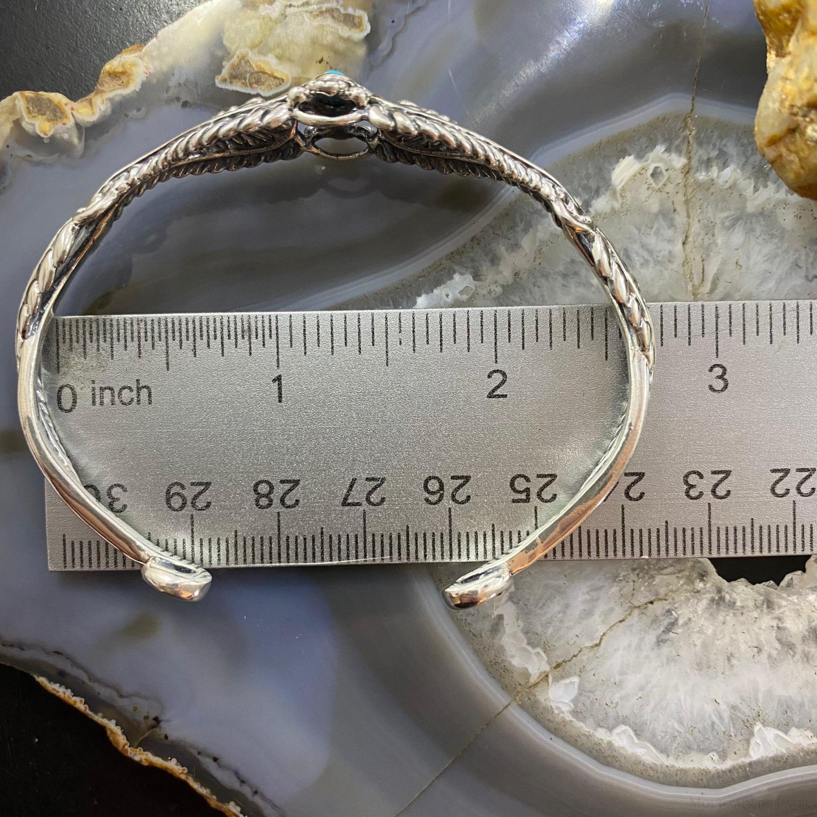Beautiful Carolyn Pollack Vintage Southwestern Style Sterling Silver Oval Sleeping Beauty Turquoise Cabochon Decorated Bracelet For Women.
