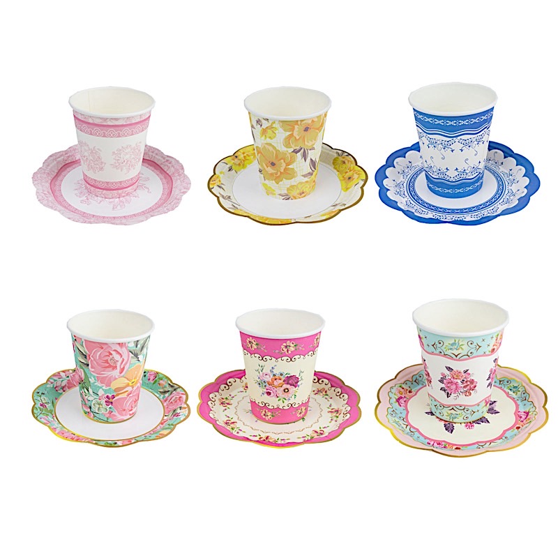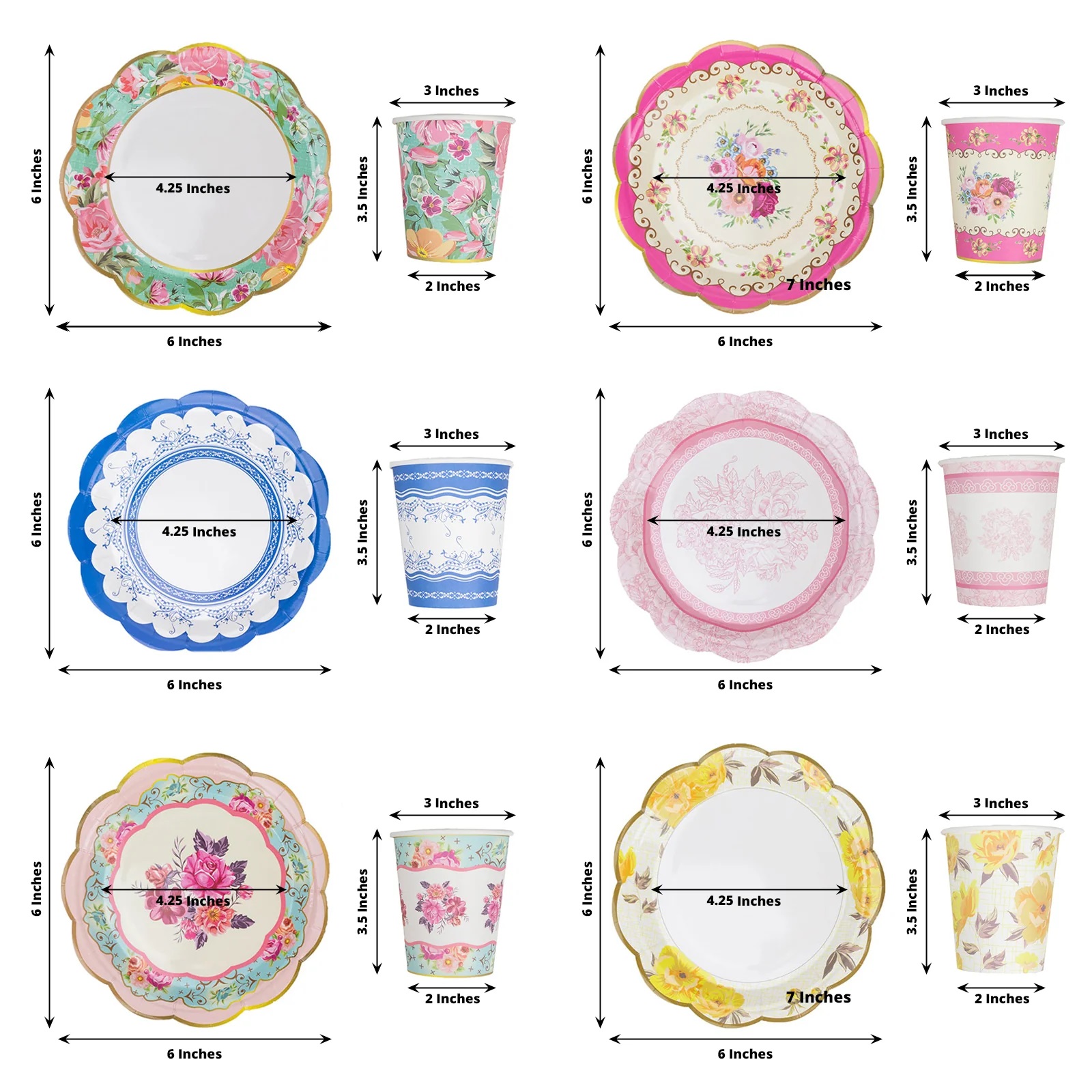 This set of disposable paper cups and saucers will serve your punch, juice, coffee or any hot or cold party drinks in style! Featuring charming floral designs these drinking cups with saucers will make a picture-perfect accent for your tables and easy cleanup. Perfect for catered events, baby showers, birthdays, family dinners or even for everyday use. Keep your guests hydrated!
