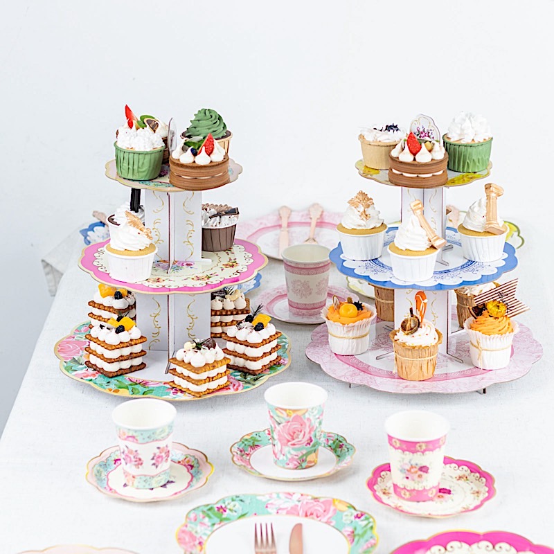 24 Assorted Disposable Paper Drinking CUPS SAUCERS Floral Design
