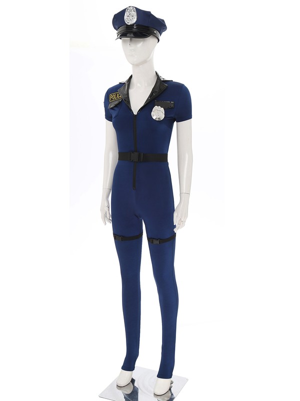 Woman Police Officer Costume Jumpsuit Bodysuit Halloween Fancy Dress Outfits
