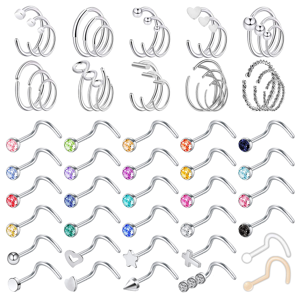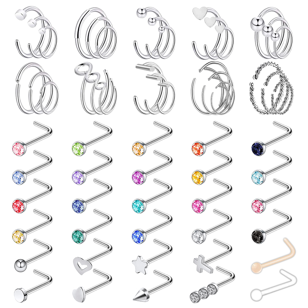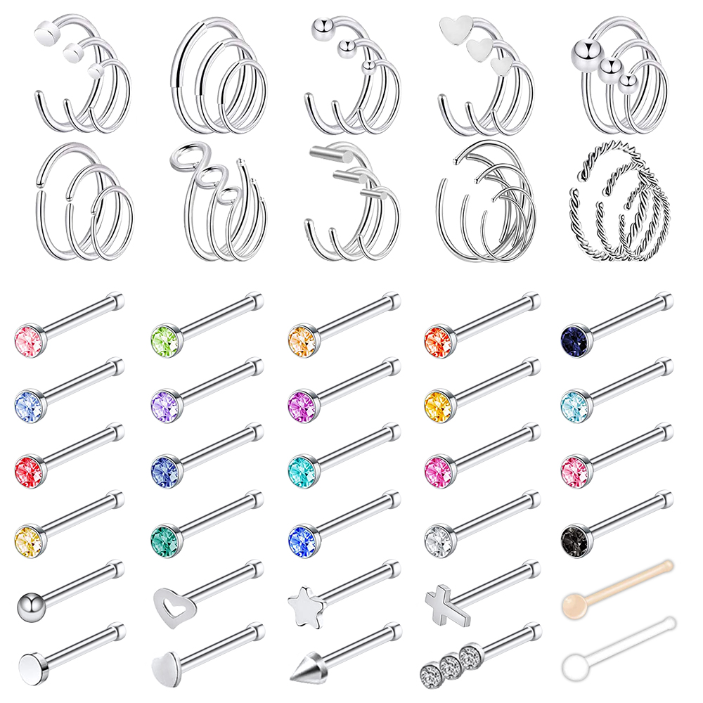 Package Included: 30 Pcs Nose Studs and 10 each of 6/8/10mm Nose Rings, 60Pcs in total