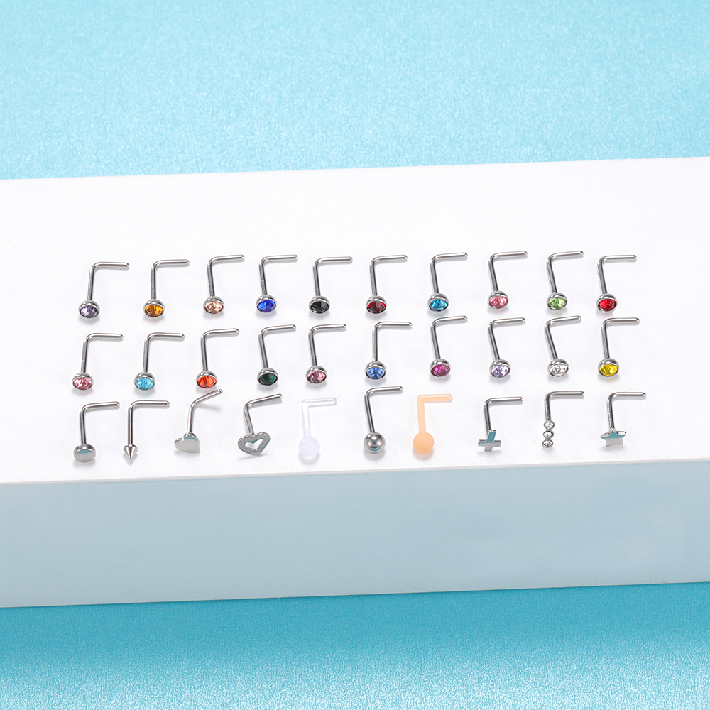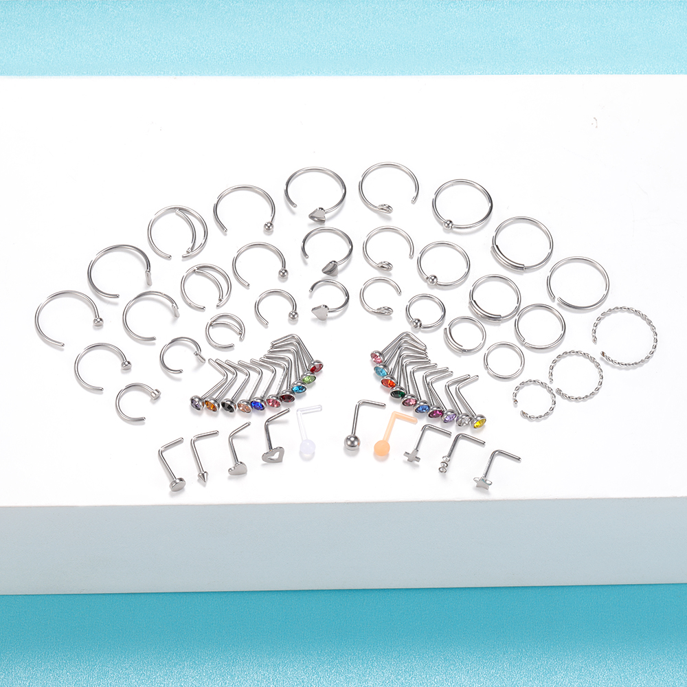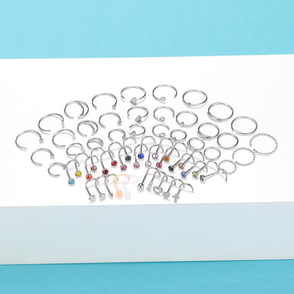 60 Pcs/Lot 20G Acrylic Crystal Nose Studs Piercing Stainless Steel Nose Ring Set