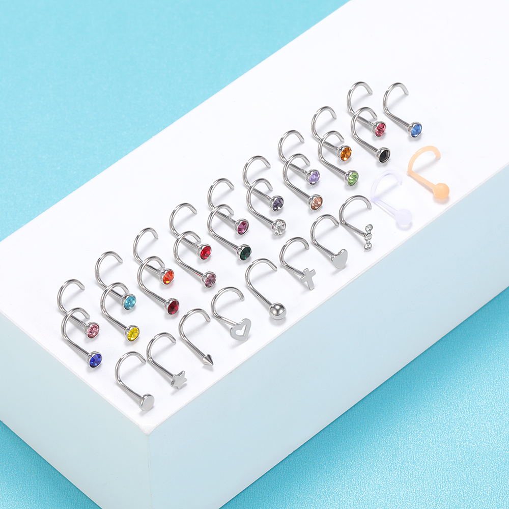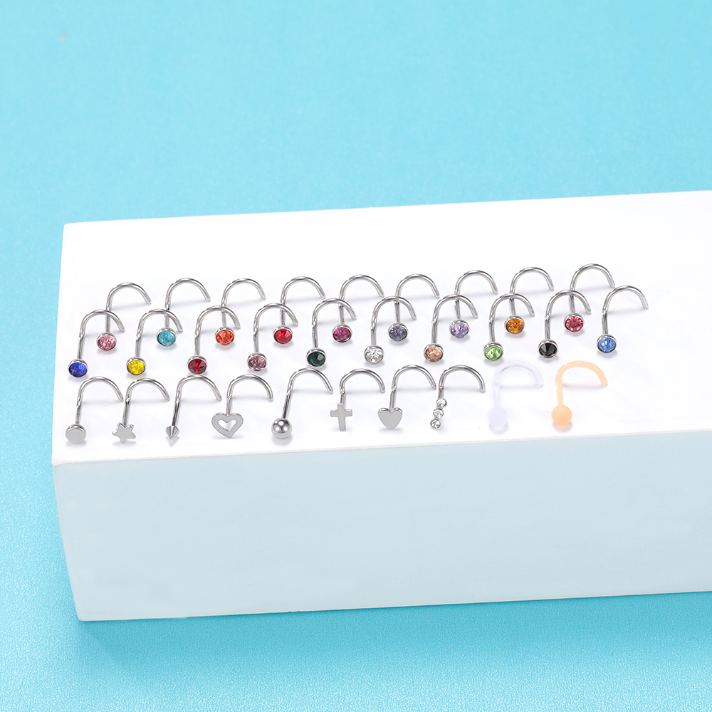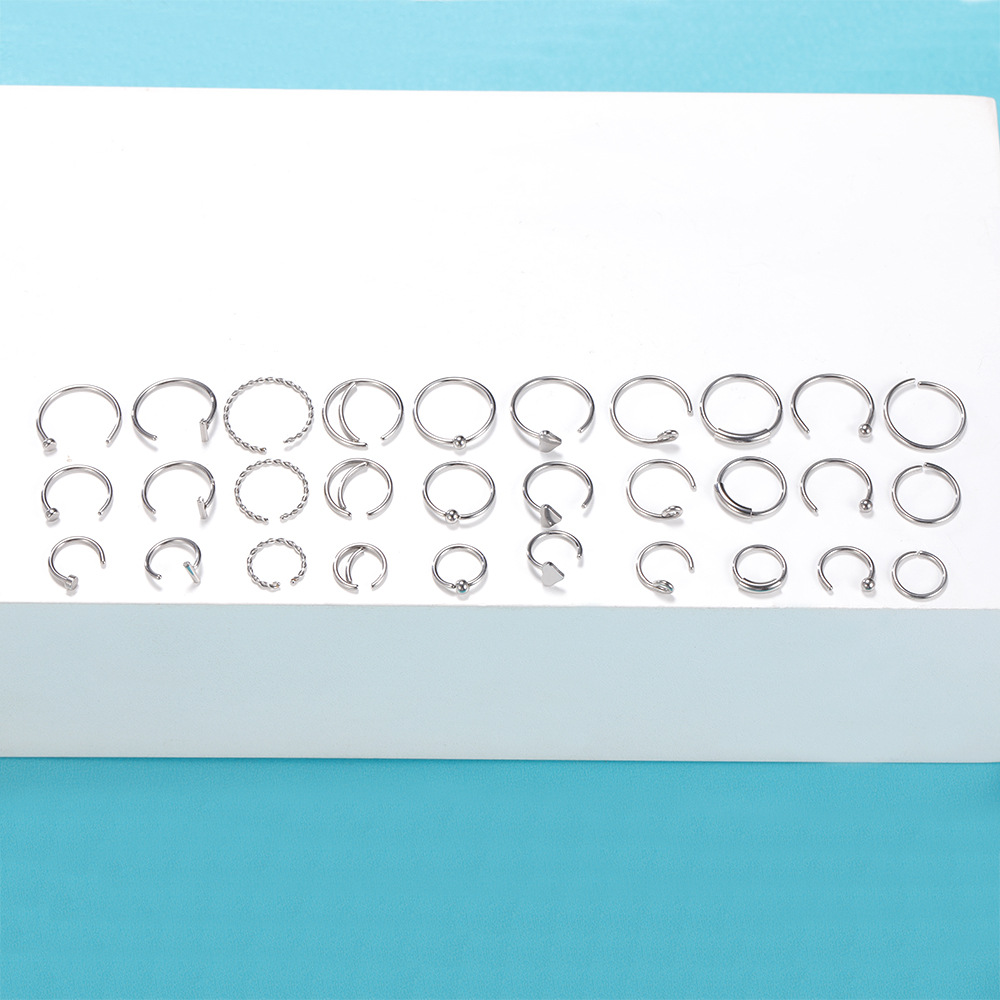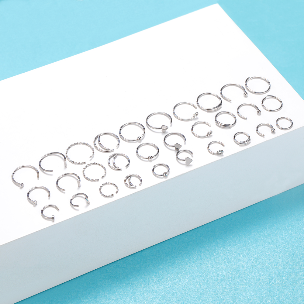 31PCS 20G Nose Rings Nose Studs Stainless Steel Septum Fake Nose Ring Nostril