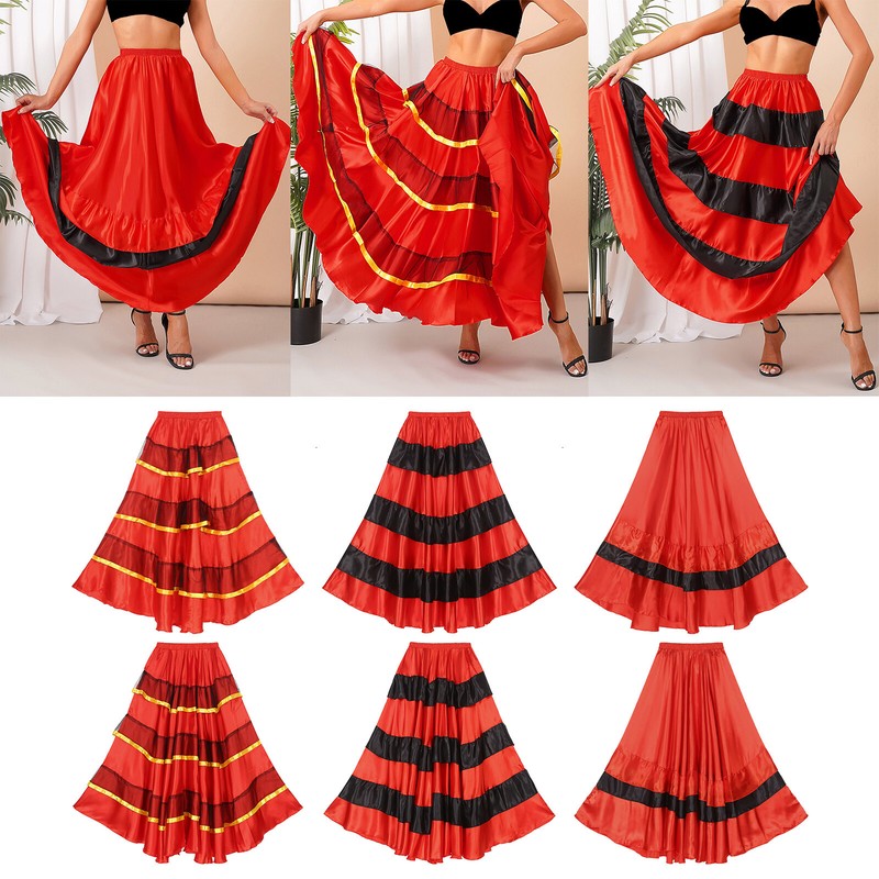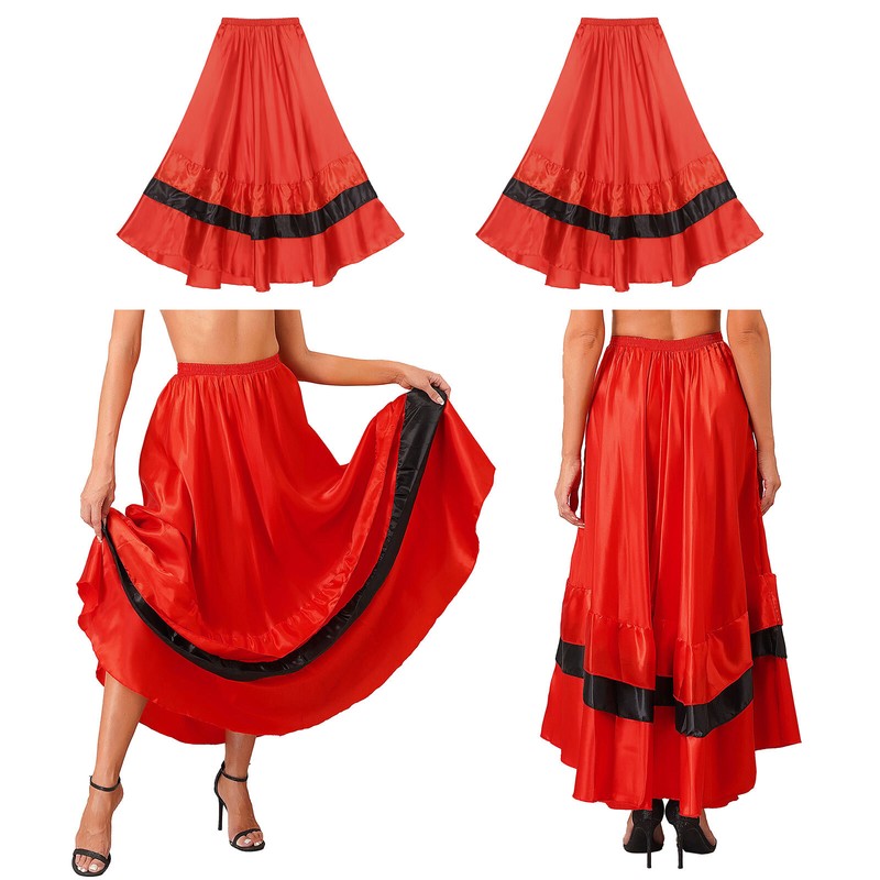 High waist dance skirt for women, the wide hemline design and tiered ruffles make it perfect for twirling and dancing.