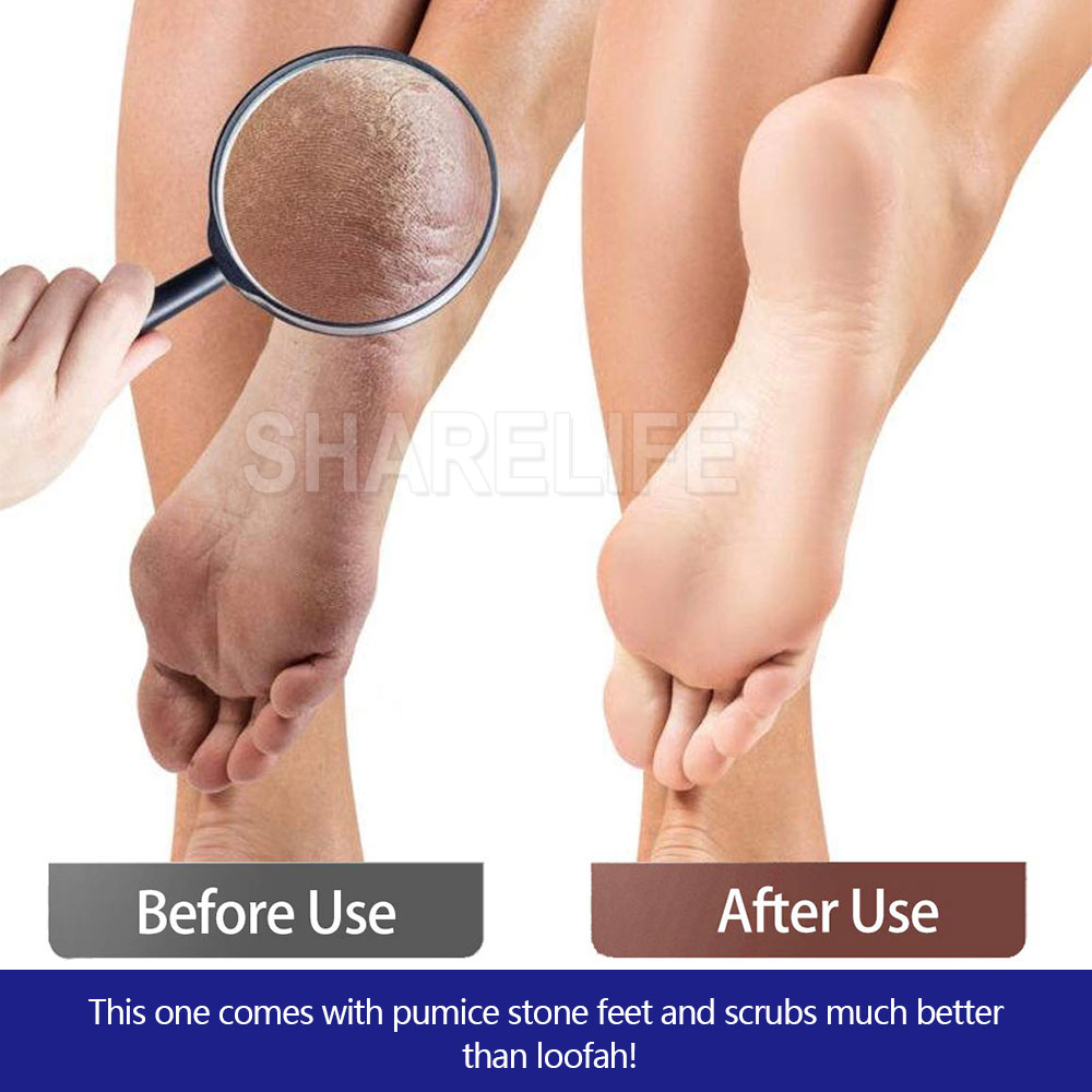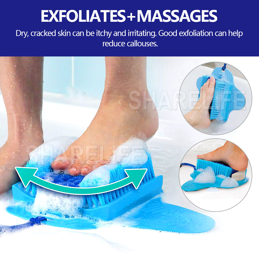 - 3. Exfoliate and clean feet without bending over.