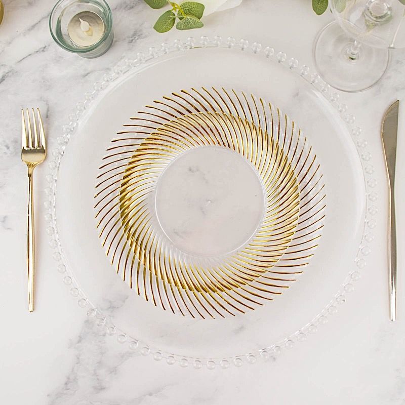 Entertainment just got easier. Serve your guests using these practical yet stylish plates and let your great food speak for itself! High quality plastic plates with swirl-designed edges will make any dinner or lunch look extraordinary. Perfect choice for fine dining occasions where fast cleanup is a must! Use these round plastic plates for weddings, bridal showers, baby showers, birthday parties or any special events.