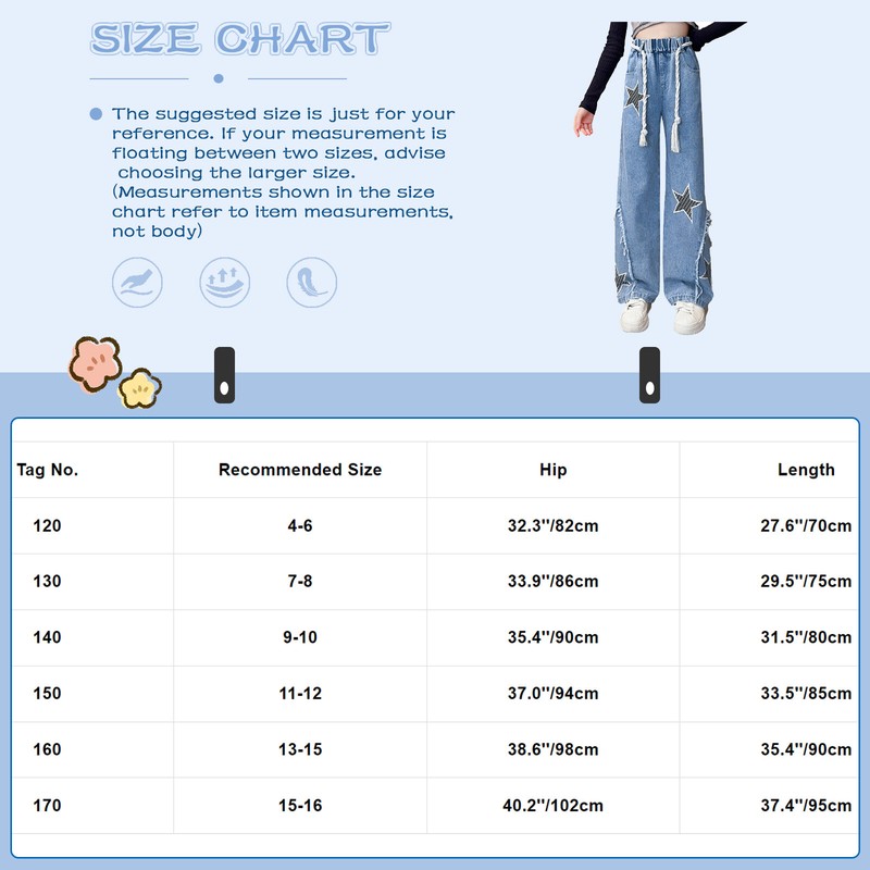 | Tag No. | Recommended Size for Kids | Waist | Length |