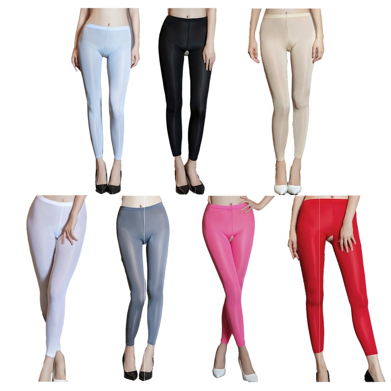 Women and Man Pure Color Shiny Metallic Stretchy Leggings Pants.