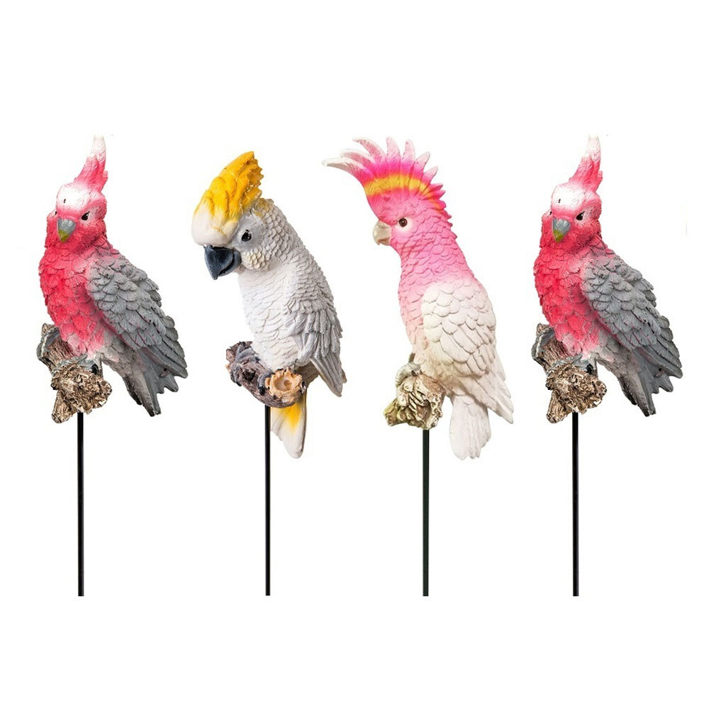 4x Cockatoo on Stick 12cm Bird Garden Decor - Assorted
