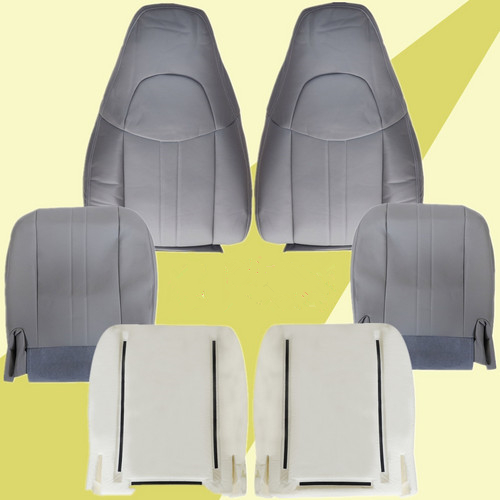 Replacement For 2003-2014 Chevy Express and GMC Savana Work Van Driver Passenger Bottom Top Vinyl Seat Cover Gray
