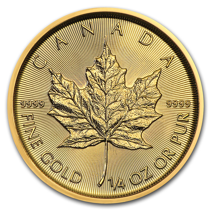 The iconic beauty and high purity of these beloved Gold coins is even more appealing in an affordable fractional size. Add 2021 1/4 oz Gold Maple Leaf coins to your cart today!