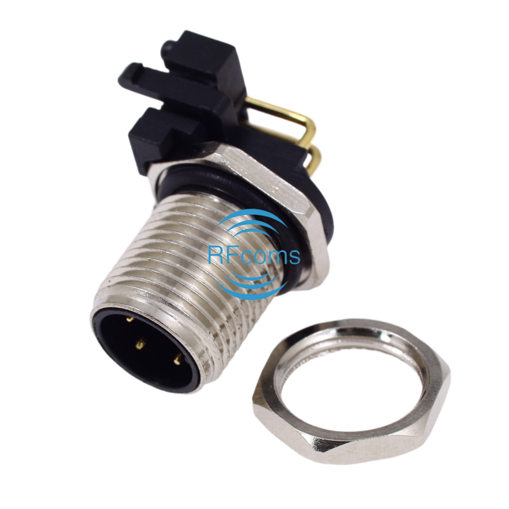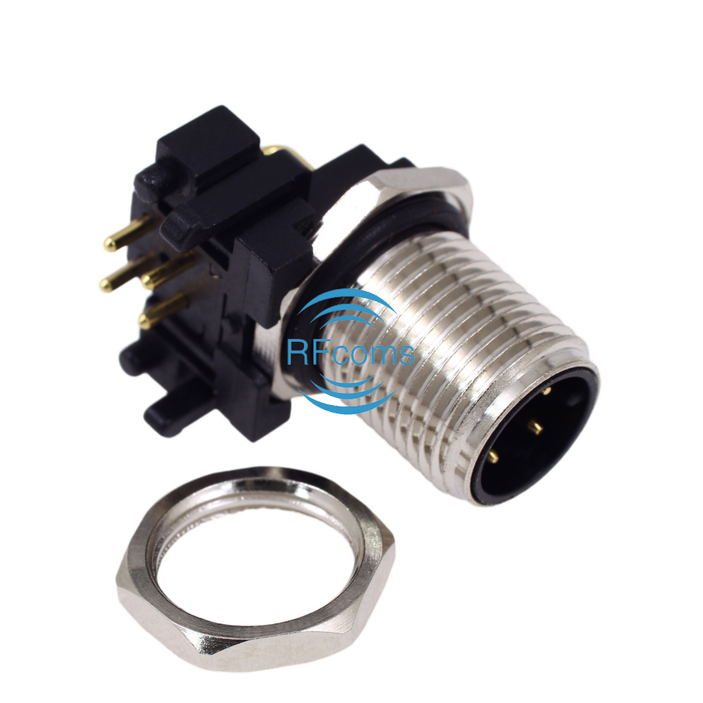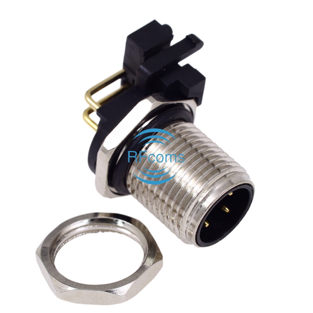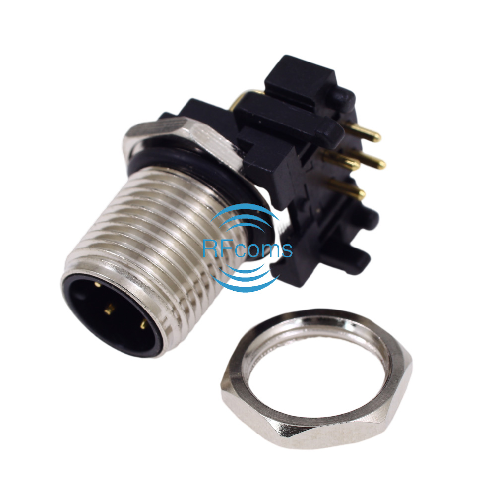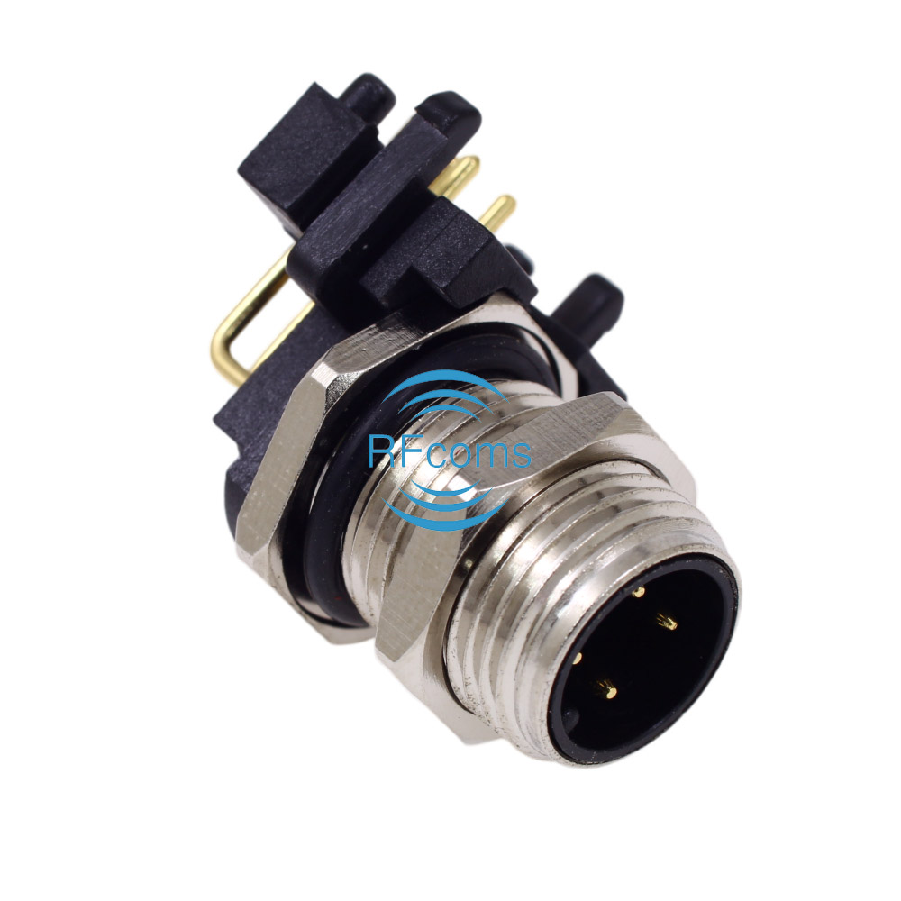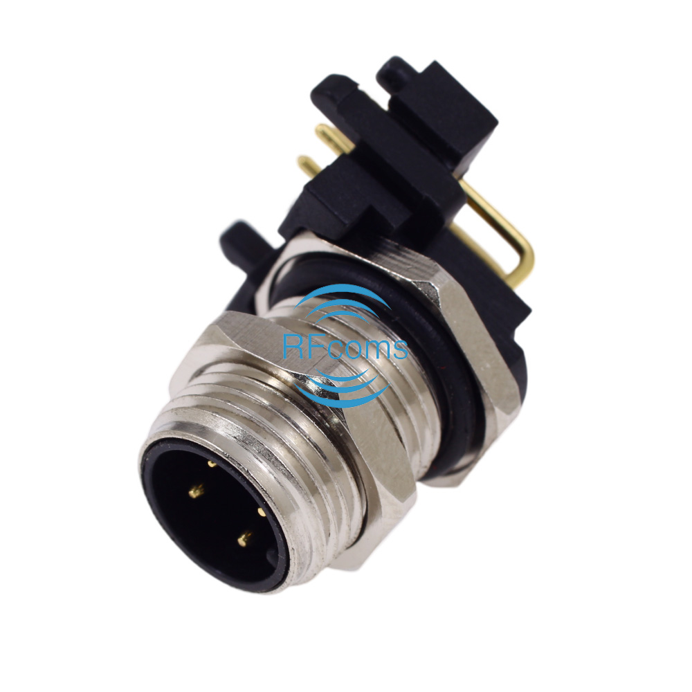 RFcoms M12 Connector 4P 4 Pins Male Panel Receptacle Right Angle Socket PCB Mount Connector A Code