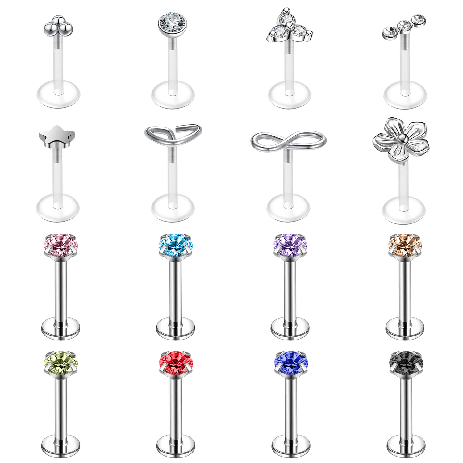 16G CZ Labret Lip Piercing Set Stainless Steel Lip Stud Ear Piercing Jewelry