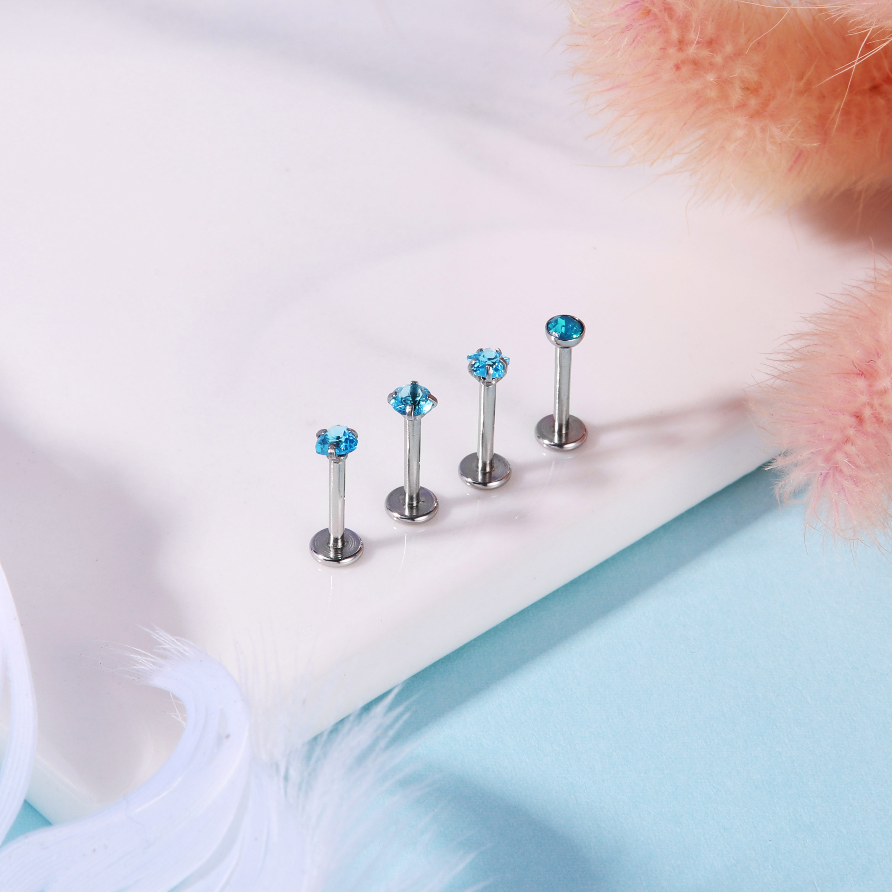 16G CZ Crystal Lip Piercing Set Stainless Steel Opal Cartilage Piercing Jewelry
