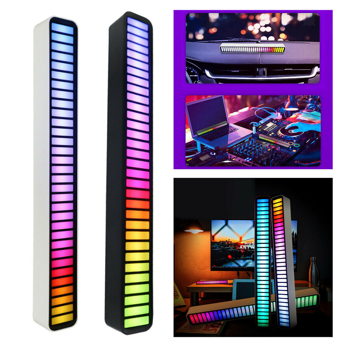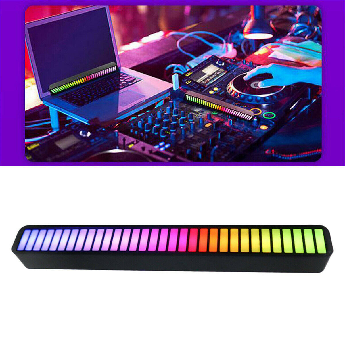USB Pickup Rhythm Light Bar Sound Activated 32 LED RGB Music Lamp Car Trucks