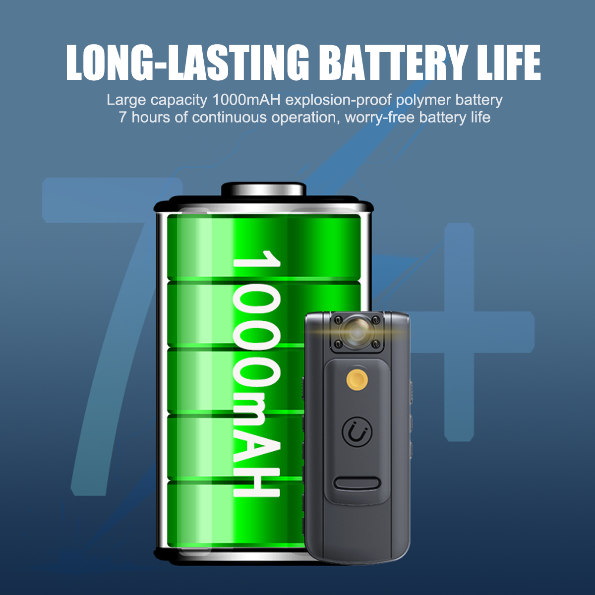 -- 1000 mAh battery: built-in large lithium battery, can achieve up to 5 hours of continuous recording;