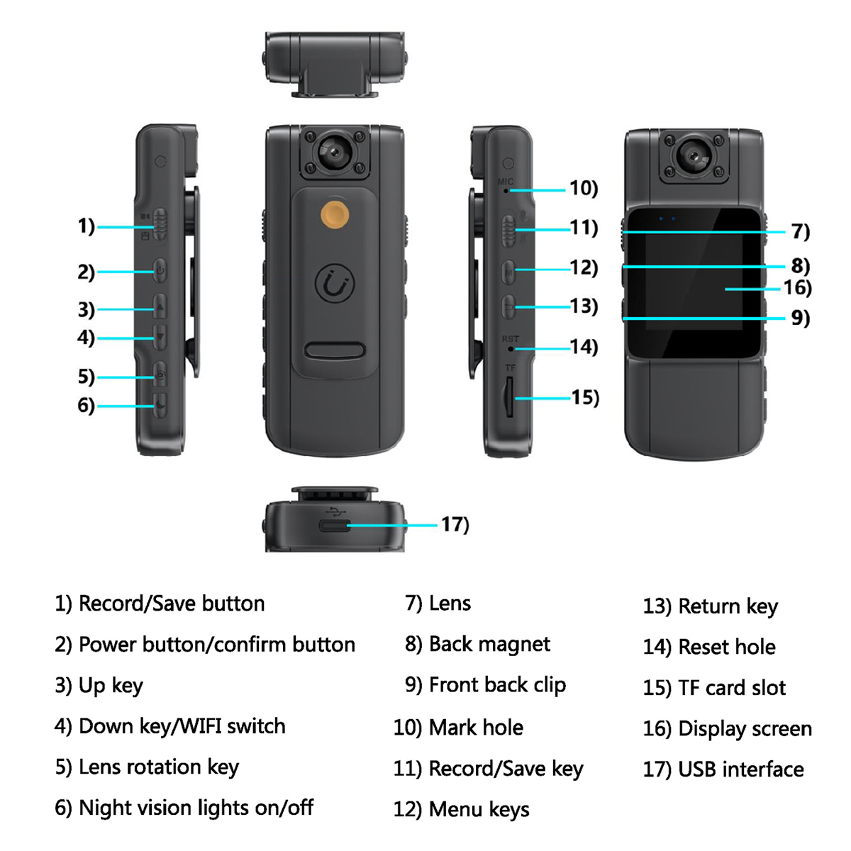 6, back clip design: can be installed with a long back clip, can be used in the pocket or other suitable back clip fixed position camera;