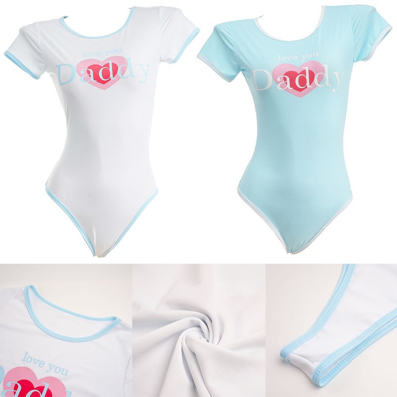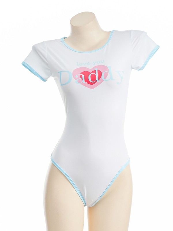Round neck short sleeve bodysuit for women, letter print, high cut design will visually prolong your legs.