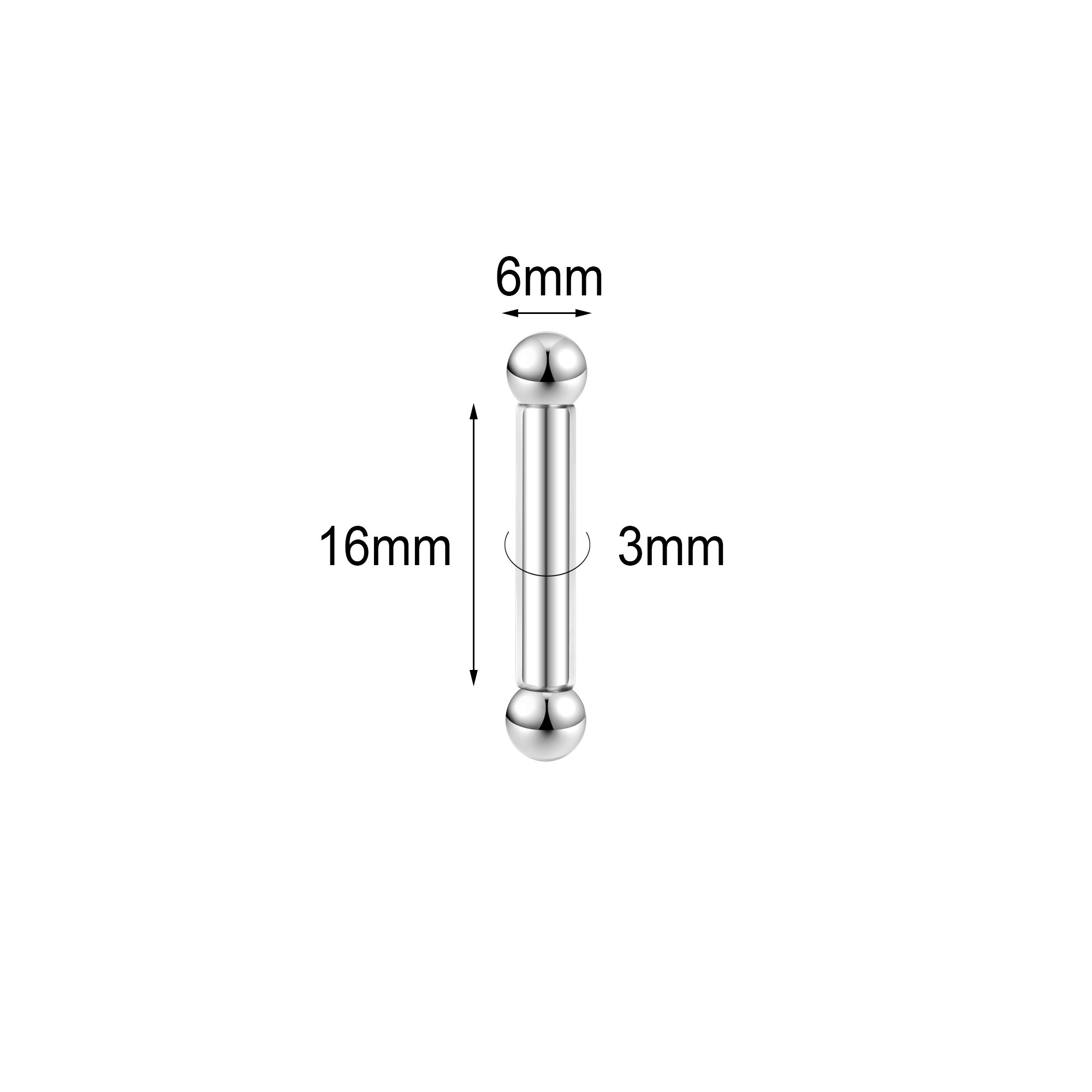 Gauge: 00G(10mm); 0G(8mm); 2G(6mm); 4G(5mm); 6G(4mm); 8G(3mm). Bar length: 12/16/19 mm. Ball size: 6/8/10/12/14 mm.