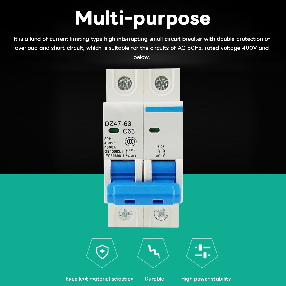 3. Multi purpose, it is a current limiting high breaking small circuit breaker with dual protection of overload and short circuit, suitable for circuits with AC 50Hz and rated voltage of 400V and below