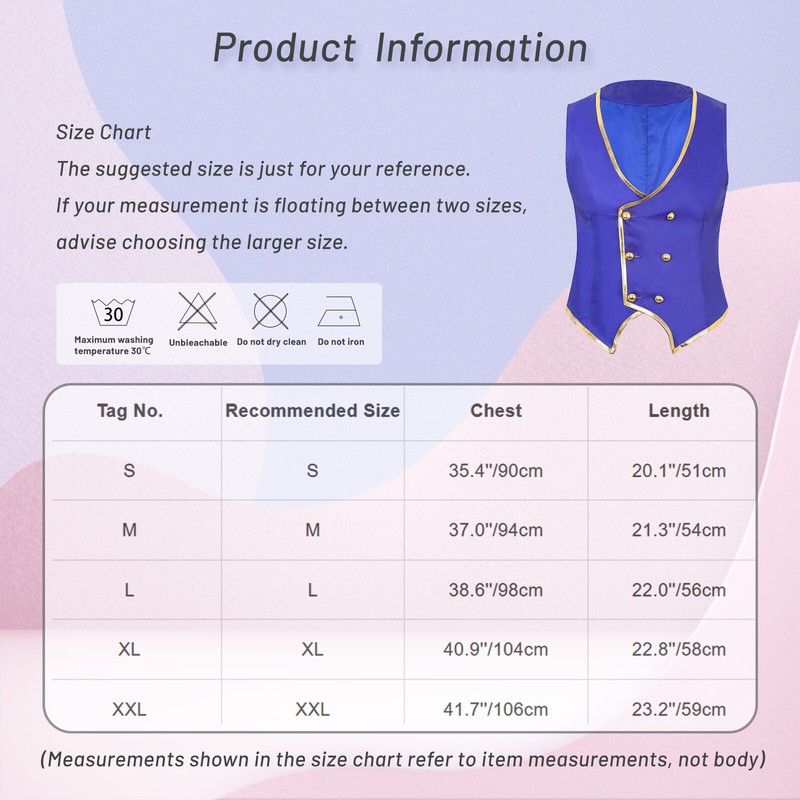 Suitable for Halloween, dress-up party, carnivals, anime fans, photography, club, festivals, themed party and other occasions. Size Chart