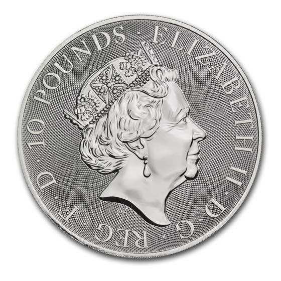 This coin celebrates a legend representing honor, courage and victory, with its impressive design of St. George and the dragon. Add this stunning .9999 fine 10 oz Silver Valiant coin from the Royal Mint to your cart today!