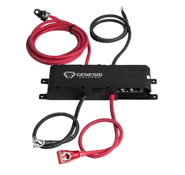 Our purpose remains the same - to allow you to enjoy your aftermarket electrical accessories without worrying about draining down your cranking battery. Even if your cranking battery gets too low to start the engine, simply press a button to jump start from your second battery. Gone are the old days of reading wire schematics to figure out how to add a second battery to your vehicle with a manual selector switch or isolator device. Genesis dual battery kits are completely pre-wired for you out of the box for easy installation. No wire strippers or crimpers required!