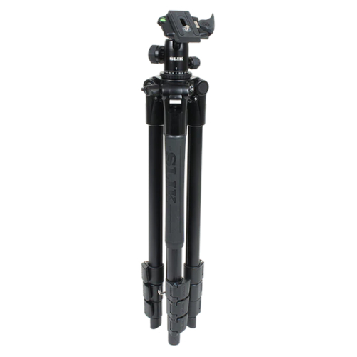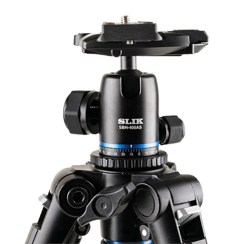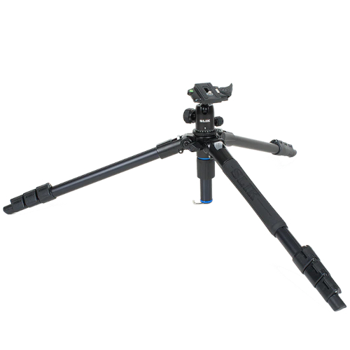 The Pro AL-324 BH4 includes the NEW Dual action BH400AS ball head with Arca-type compatible quick release plate. The head has independent pan and full release controls. The whole package weighs 3.4 lbs and supports 8.8 lbs of camera equipment. To put that in perspective: a Nikon D850 full-frame camera with 24-70mm f2.8 lens attached weighs 4 lbs. The head is compact, versatile, and can support all that weight at any angle without drift or slacking.