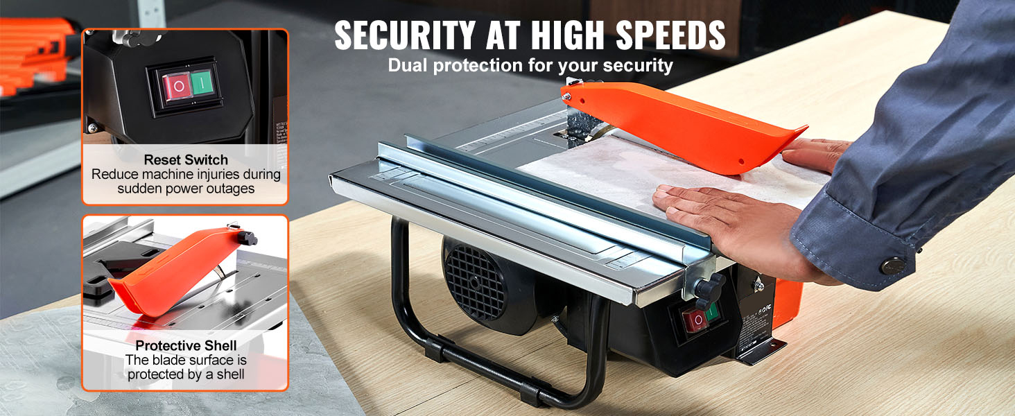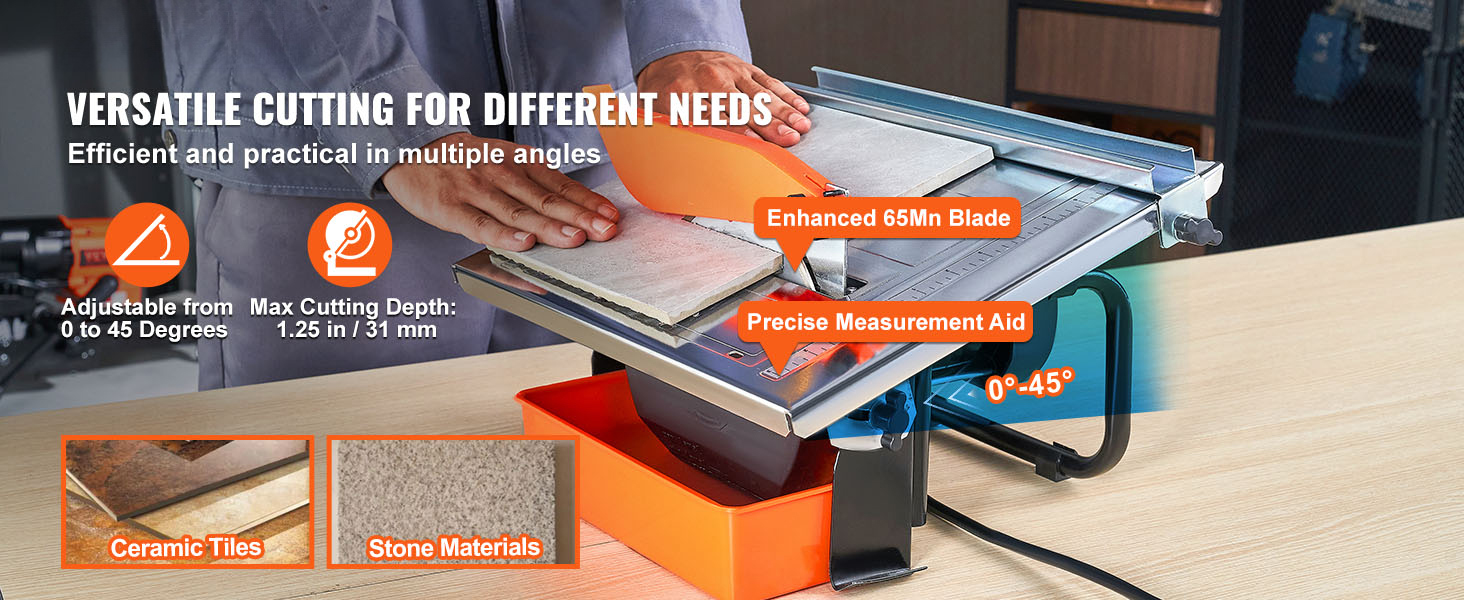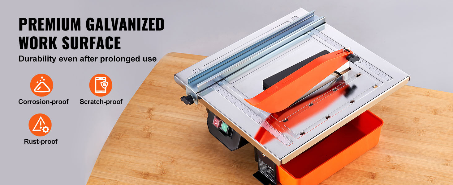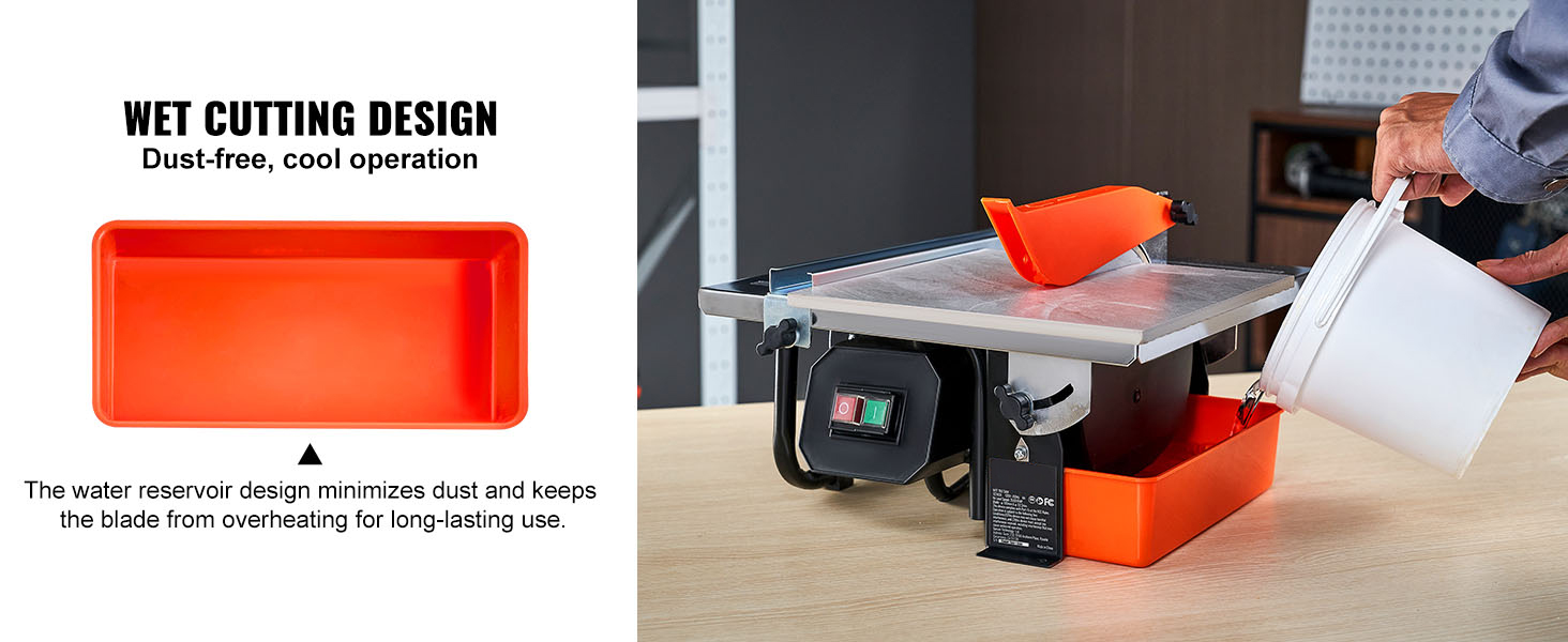 Our wet saw features a water reservoir to keep your workspace clean and reduce the risk to your respiratory health. The damp environment ensures dust particles settle in the water, promoting fresher air quality. The water-cooling effect extends the lifespan of the blade and enhances efficiency.
