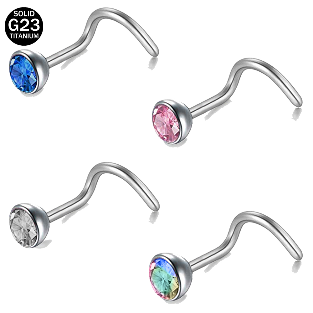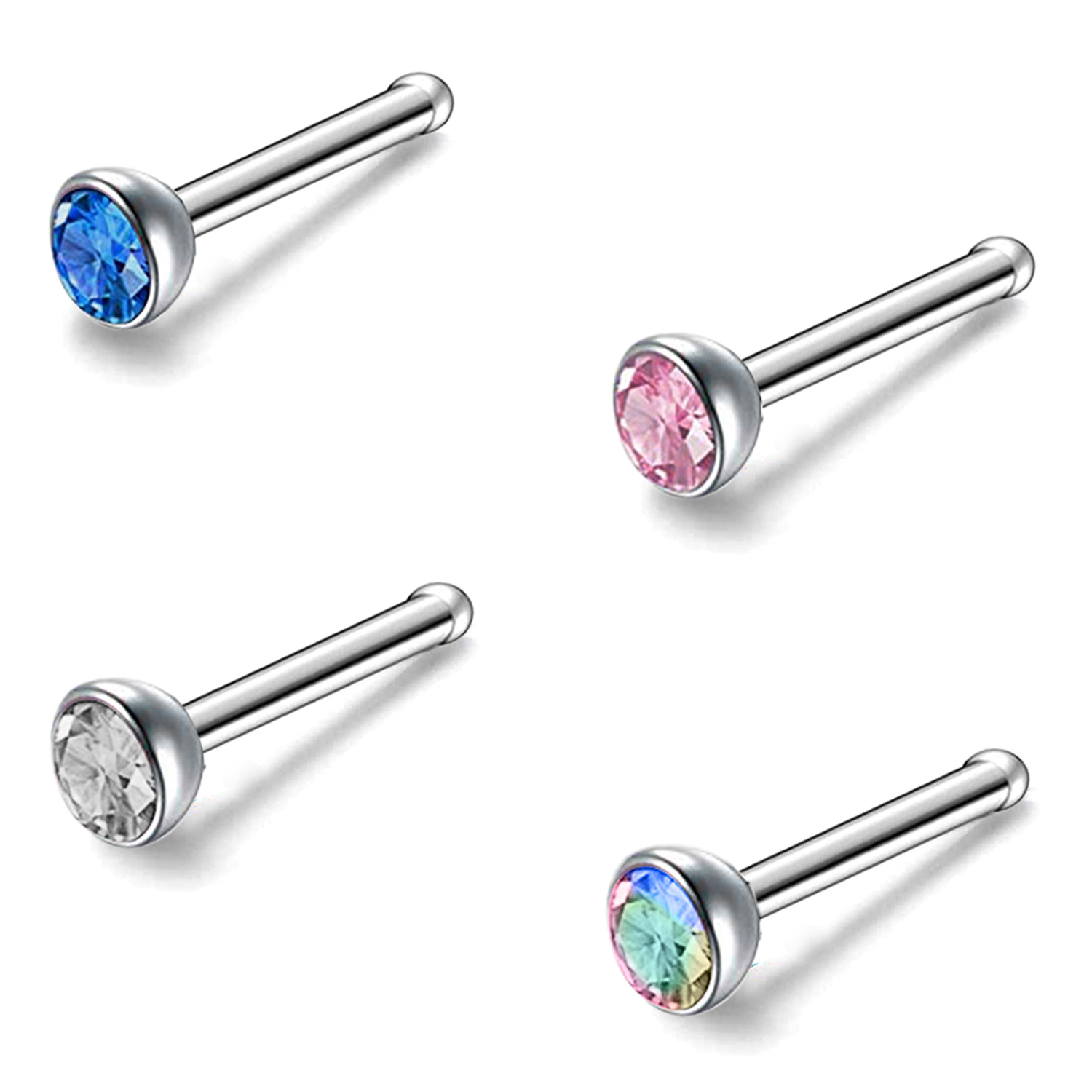 4Pcs Titanium Nose Stud Set 20G CZ Nose Rings for Women Nostril Piercing Jewelry